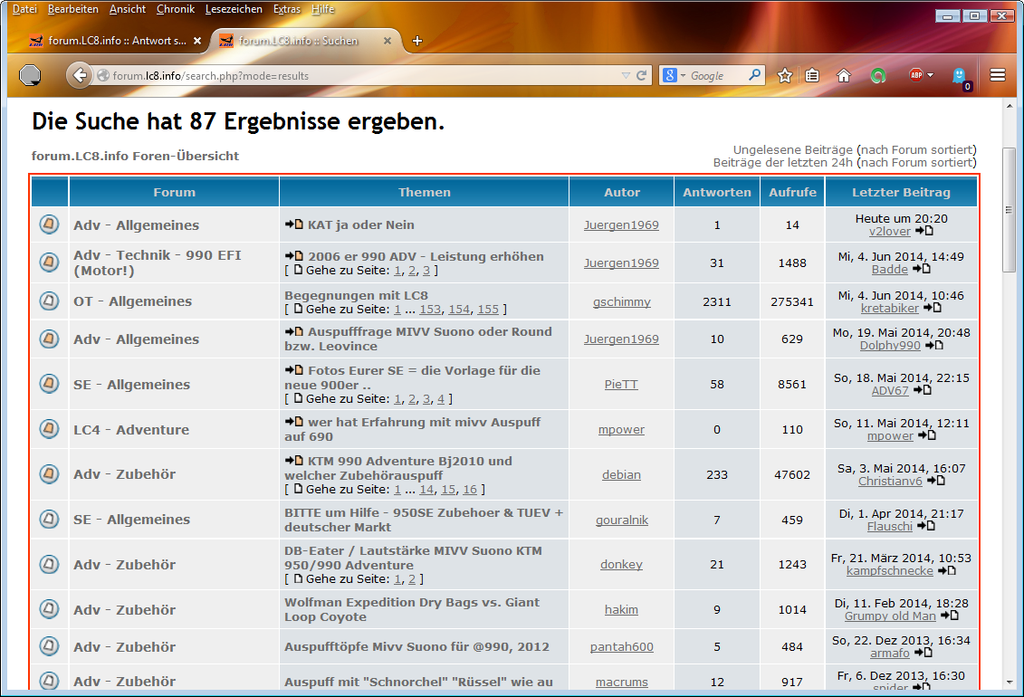 Juergen1969 Fahrschüler Anmeldungsdatum: 18.05.2014 Beiträge insgesamt: 9 KTM LC8 Adv 990, 2006 → 41.000 km