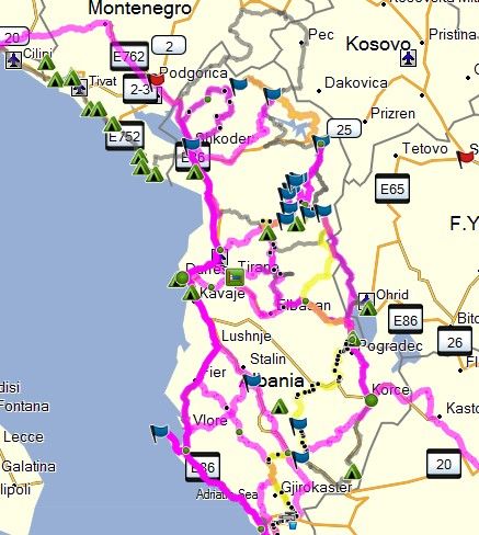 Bei unserer Alabnien/Mazedonientour 2011 hatte ich auch Tagesetappen von 300-320 km eingeplant, musste aber vor allem in Albanien sehr bald erkennen, dass man auch froh sein muss wenn es nur 250 Tageskilometer sind. |