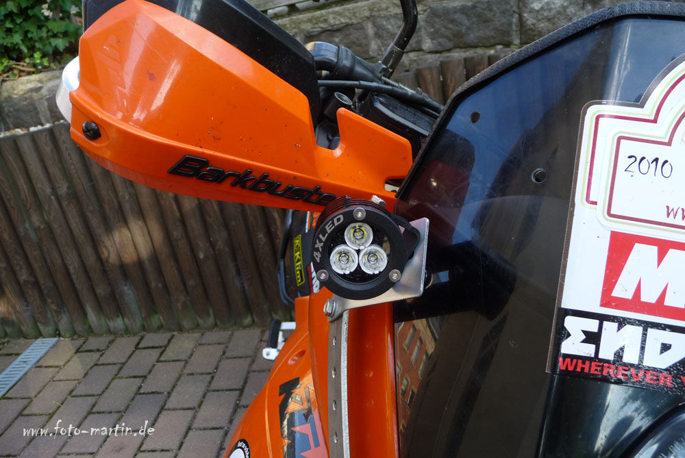 Deshalb habe ich meine stark nach unten justiert. Sie leuchten nun den Bereich unmittelbar vor dem Bike aus. Eigentlich habe ich die Leuchtkörper hauptsächlich montiert, um besser durch den Gegenverkehr wahrgenommen zu werden.......das paßt 100%ig Mr. Green Wink !