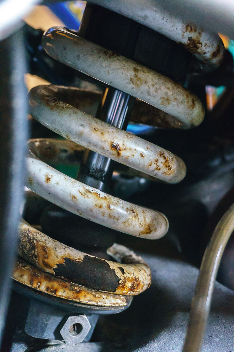 so wie das Federbein aussieht würde ich mir erst mal die Frage stellen, ob das Teil technisch in Ordnung ist.