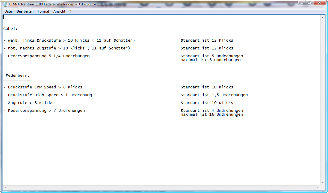 Der Link spricht theoretisch für die Buel XB12S und praktisch für die 1290 Super Duke. Die Duke bin ich einmal gefahren. Die hat ein super Fahrwerk für die Landstraße. wub