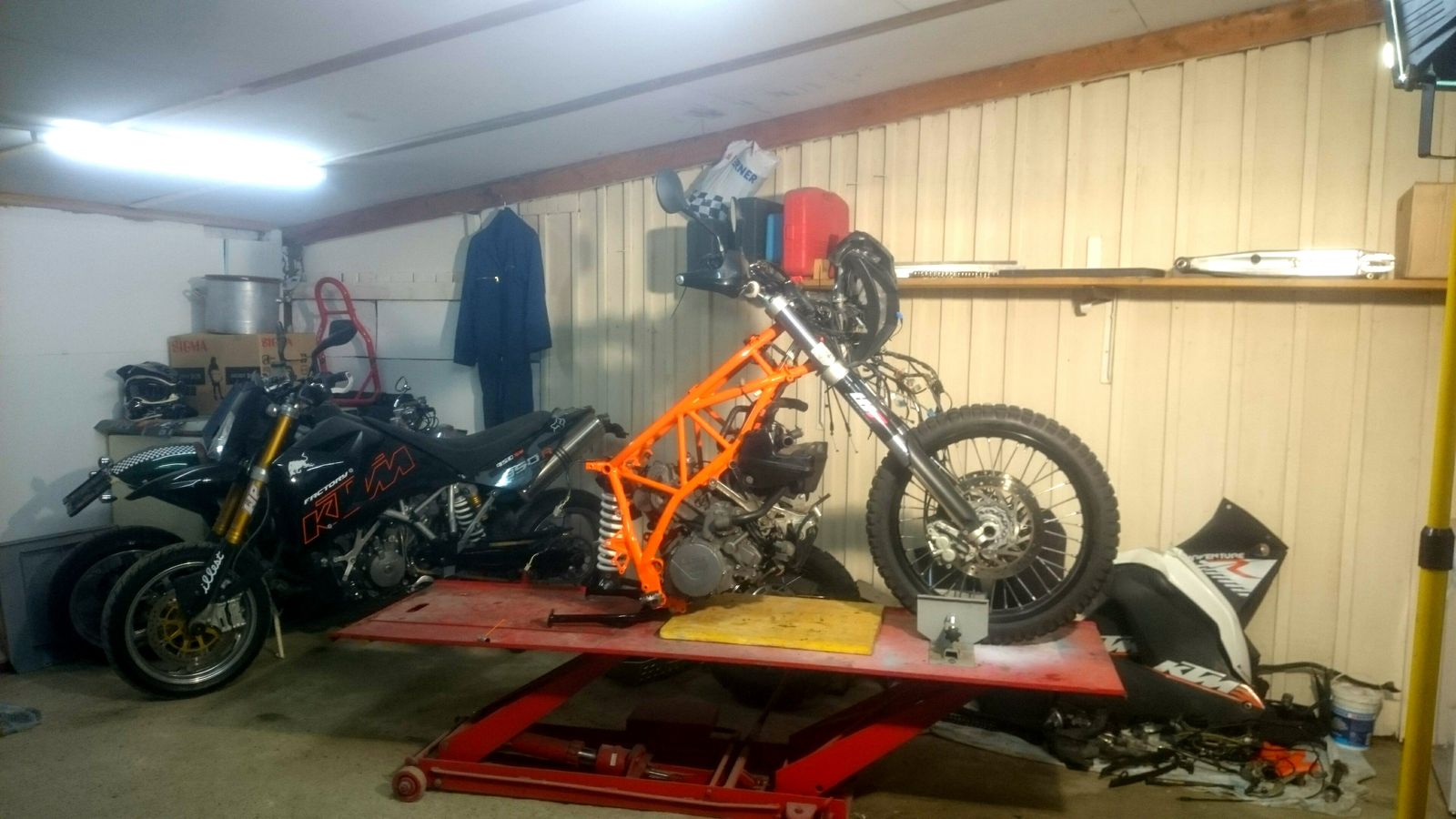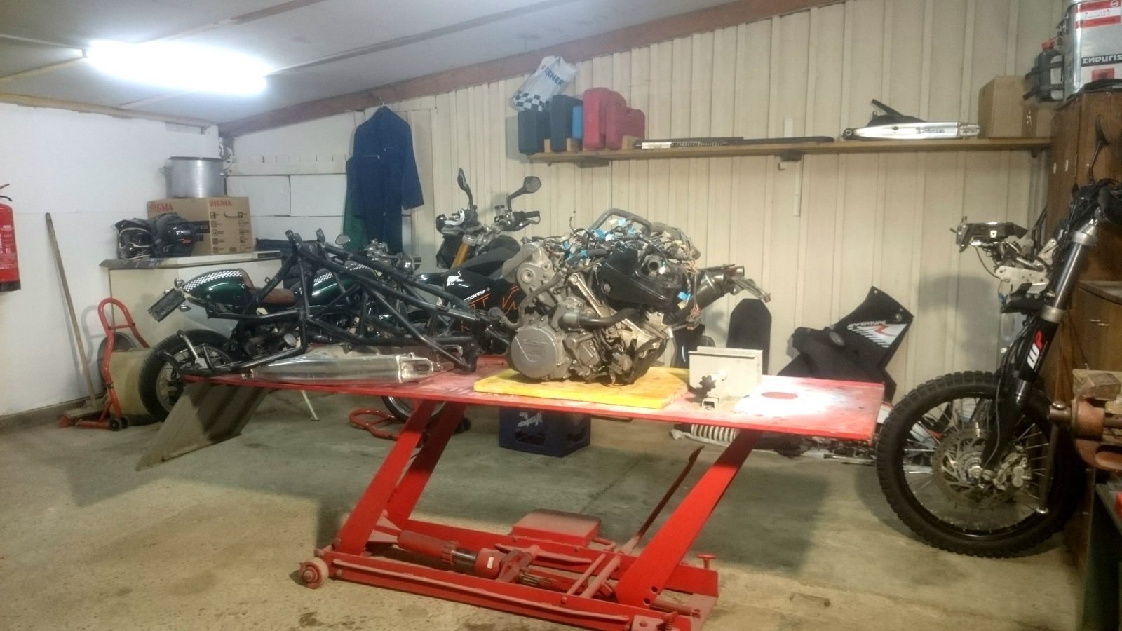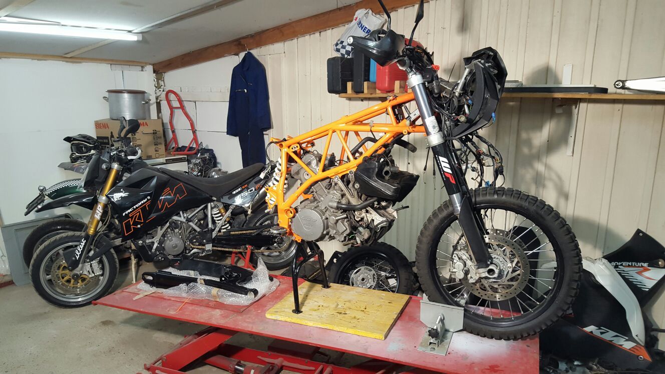 ....Rahmen, Schwinge, Sturzbügel und Kleinigkeiten gehen zum Pulverbeschichten!! jetzt wird eine 990R gefaked!!