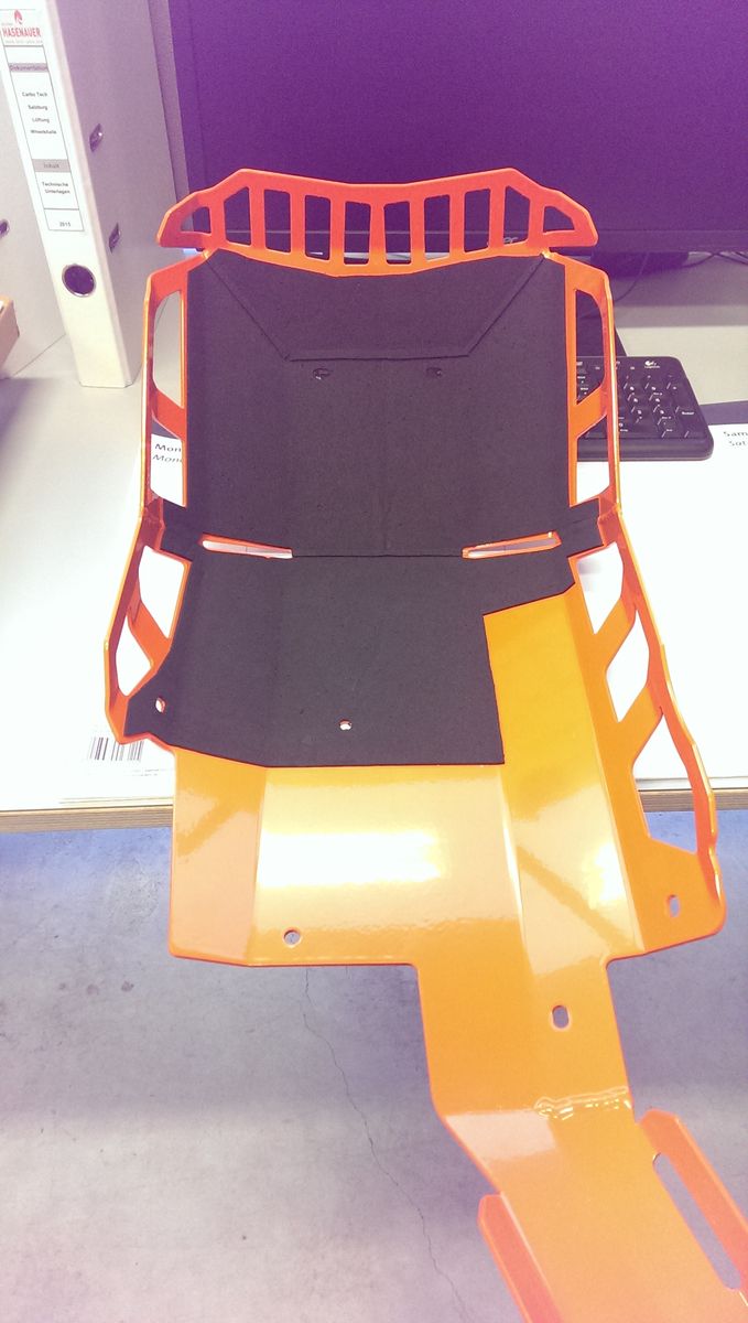Alternativ kannst du die Matte auch 1cm länger machen und sparst dir so die Unterlegscheiben für die Mitte unter dem Motorschutz. Also dort wo der Querträger des Halters entlang läuft.