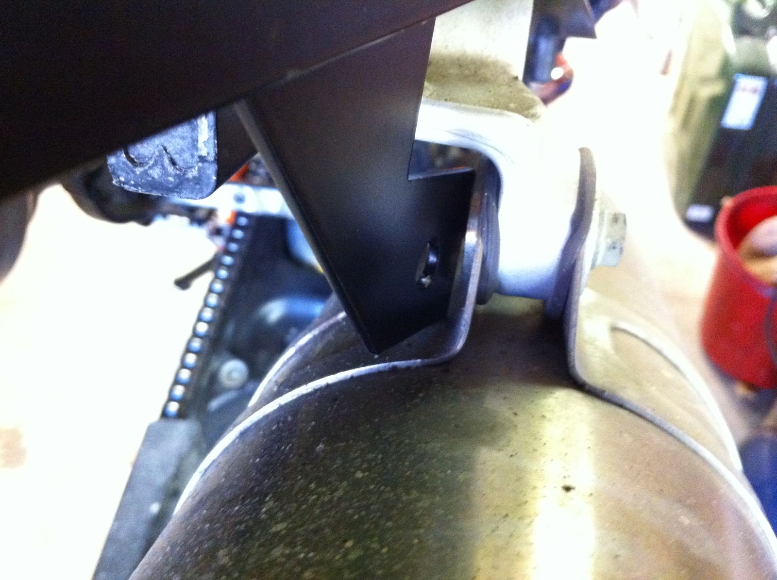 oder hab ich gar etwas falsch gemacht??  | Nein, Du hast da nichts falsch gemacht. Diesen Winkel kann man vorher nicht biegen. Einfach die Schrauben anziehen. Die Teile legen sich dann an den Auspuffhalterungen an.