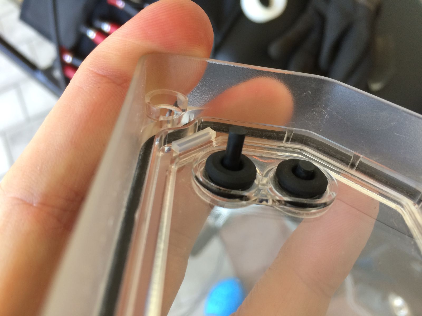 hab den gummistift nach innen gezogen und ihn mit einem ca. 5mm dicken klebebandstreifen (zwei- bis dreimal) umwickelt. gibt genügend festigkeit, damit beide tasten wieder ordentlich und ohne fingerbrechen funktionieren.