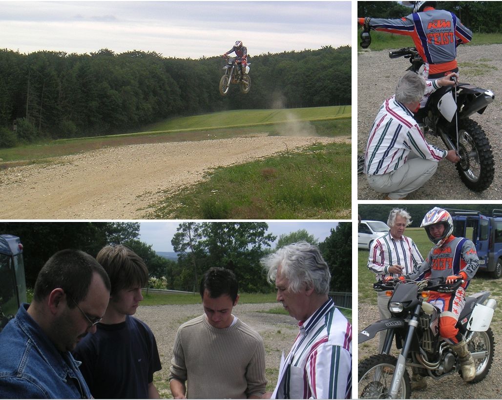 Interessanterweise ist die Air-Damping Technologie eigentlich auf KTM entwickelt worden. Hier der Erfinder der Gas-Feder-Dämpfer Prof. Dr. Henning Gold mit Testfahrer Christian Feist (müsste so 2001 gewesen sein). Den auf der Testfahrt eingesetzten GFD-Prototypen durfte ich übrigens zusammenschrauben, der hat gehalten, hüstel.. Rolling Eyes