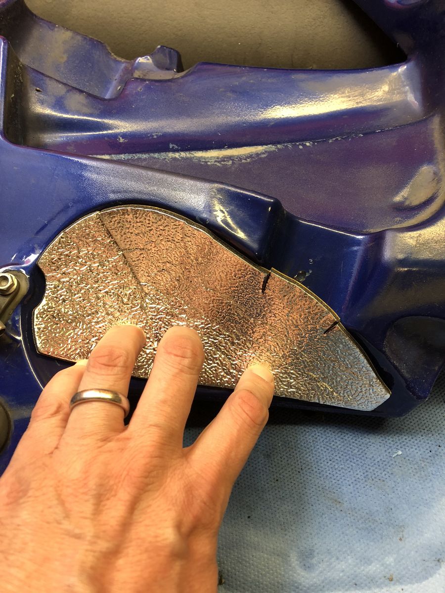 Bei meinem neuen rechten Tank ist die Hitzeschutzfolie zum Glück nach dem Säubern der wub in der Garage abgefallen. Mit dem Montageband hält es.