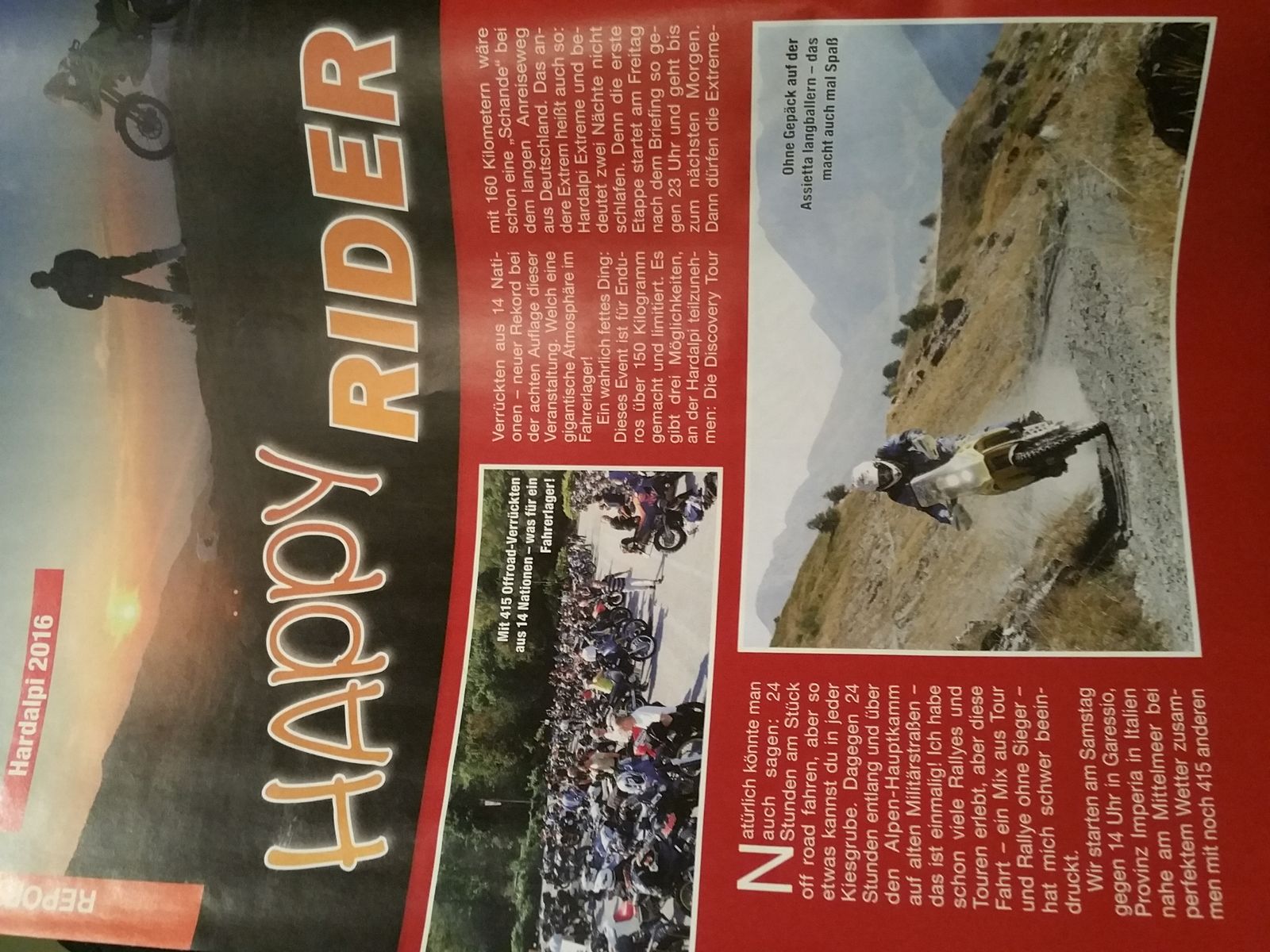 Wir sind die Hardalpi mit 3 KTM 950 gefahren (dabei ein Neuling, der zum ersten Mal am Start war)und waren nach etwas mehr als 17 Stunden im Ziel - und zwar alle drei!!! Zwei Franzosen auf Suzuki DR 650 waren noch 10 min früher da.