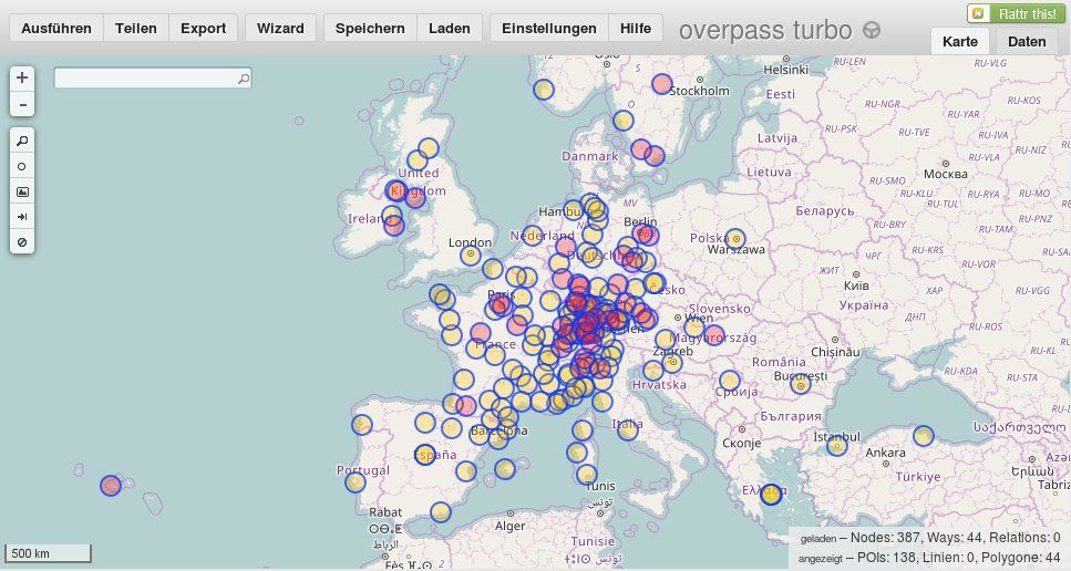 Anbei die 2 Dateien, wie overpass-turbo.eu sie generiert hat: