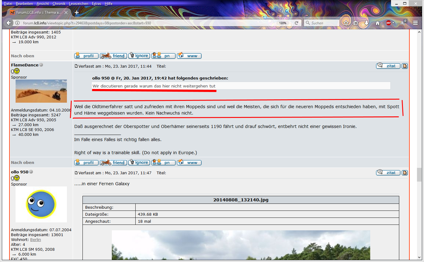 Sehe ich genau so, was ist passiert: ein user stellt ein Bild ein, es wird diskutiert und einer wird beleidigend, ich denke das ist