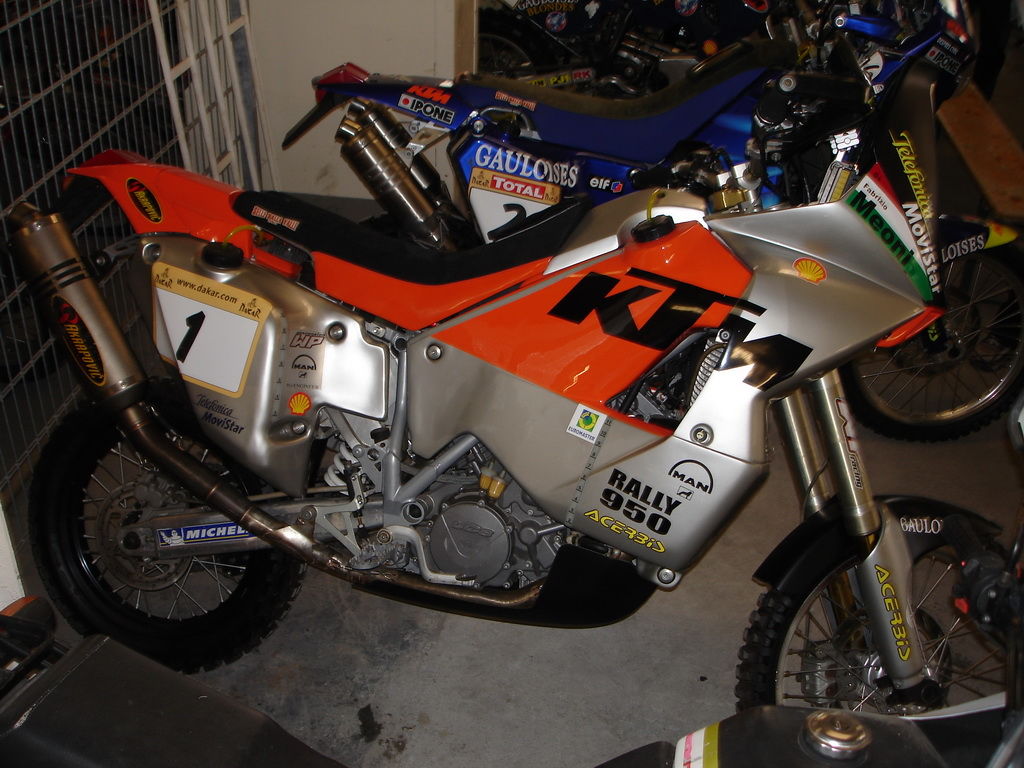 Am 19.06. mußte ich unfreiwillig eine Werkstatt aufsuchen. Meine Dicke sprang nicht mehr an. Der Zufall wollte es das dieses mir gerade im Zillertal passierte. In Wiesing ist nämlich die Werkstatt der Familie Kinigardner. Und was stand im Austellungsraum herum? Die Werksmaschine von Fabrizio Meoni mit der er bei der Rally Dakar gefahren ist! Sie wollten sie aber irgendwie nicht mit meiner tauschen Wink Schade ich wäre sie gerne mal gefahren, aber auch das war leider nicht möglich.... Und ich Idiot habe auch noch vergessen selbst Bilder davon zu machen. Ich war noch zu sehr mit meiner @ und dem Problem beschäftigt.