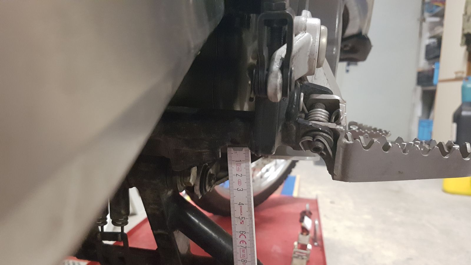 Habe schon seit zig Jahren die tieferen Fußrasten dran aber dafür ist der Bremshebelarm zu hoch. Dann gab es die Idee mit der Edelstahlblech "Tieferlegung".