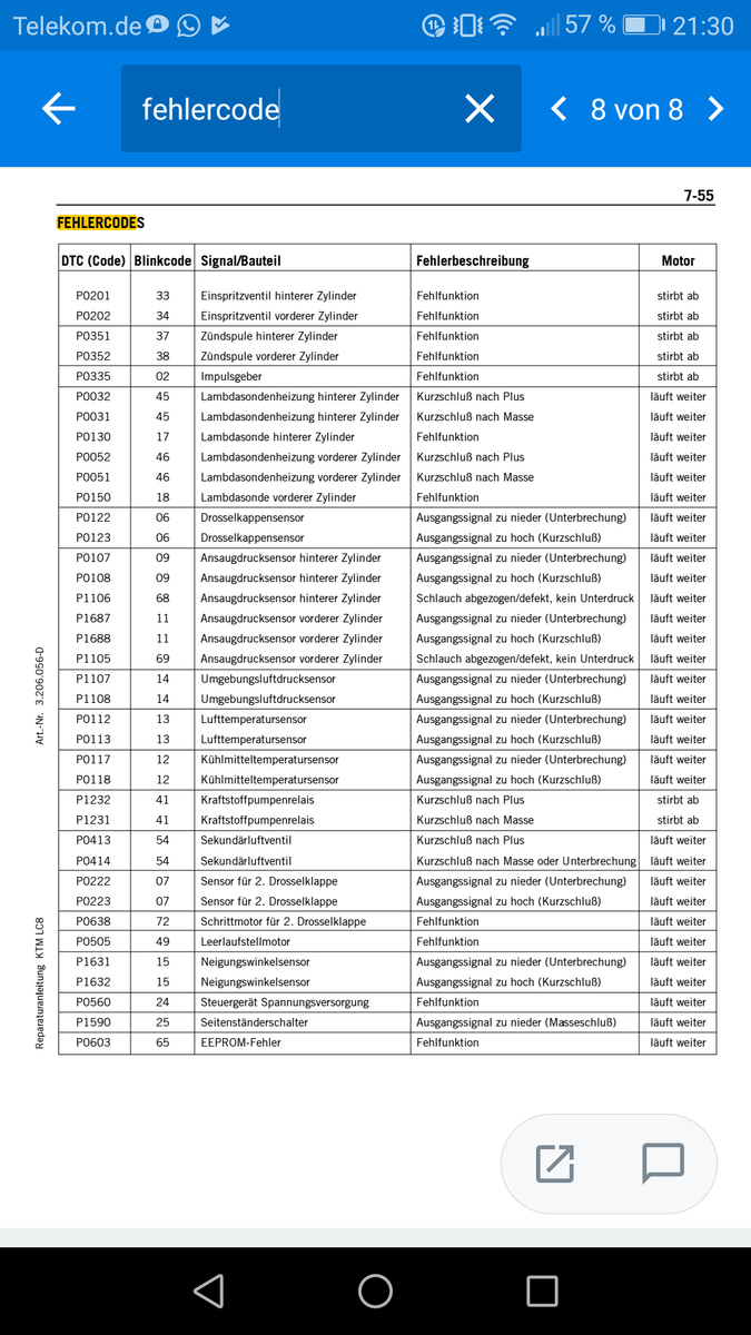 Die F 3 mal lang, 8 mal kurz ist die Zündspuhle Kontakt Zylinder 2 gemäss Betriebsanleitung