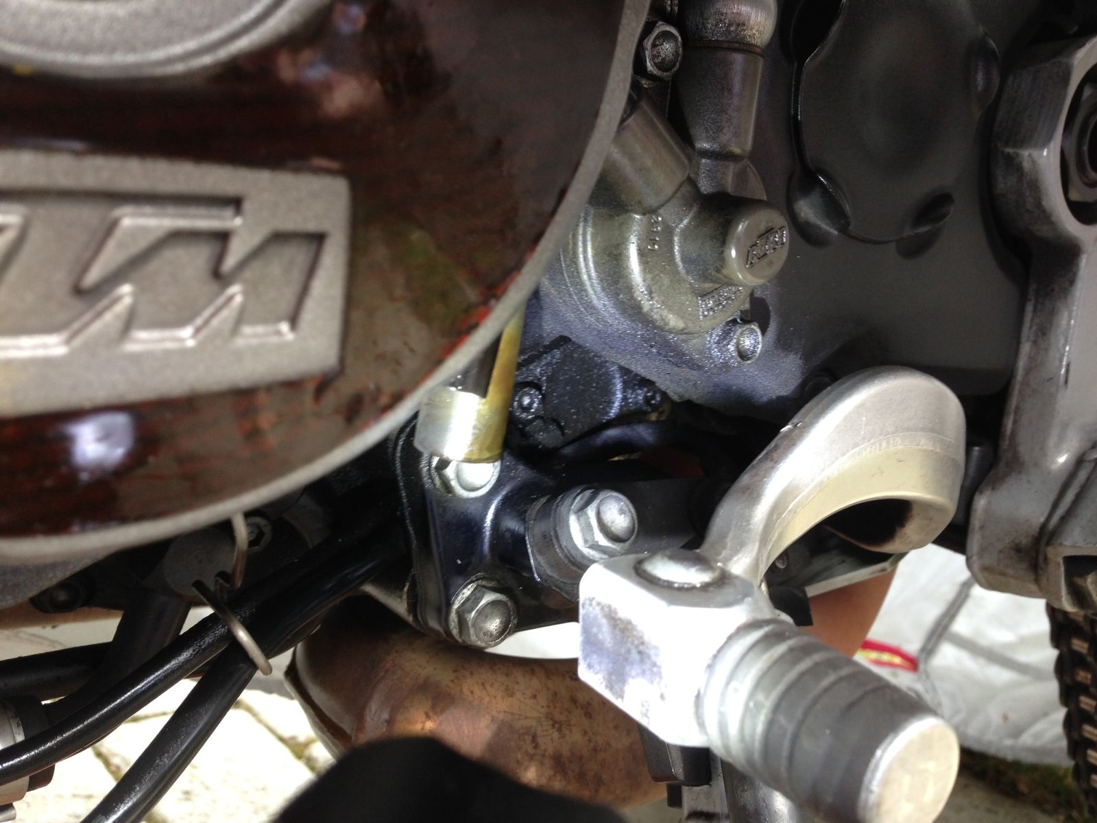 Hab heute nach einer Feierabendrunde festgestellt, dass sich mein Schalthebel irgendwie sehr locker anfühlt. Als ich zu Hause ankam, dtellte ich dann fest, dass sich bloß die Befestigungsschraube gelockert hatte, warum auch immer. Was mich viel mehr gewundert hat, dass an den Teilen darüber neben dem weggeschleuderten Kettenfett auch Ölbefand.
