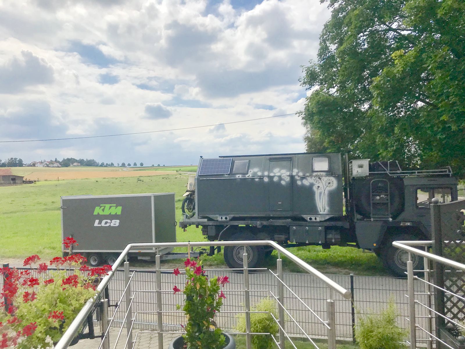Schnell noch eine neue Anhängerkupplung gebaut um den Servicehänger mitzuführen, schließlich will man ja nicht bei jedem Camp Wechsel alles vollständig verstauen. Noch „schnell“ Licht rein, Regale und Befestigungsschiene und ab zum Eintragen der „Ackerschiene“.