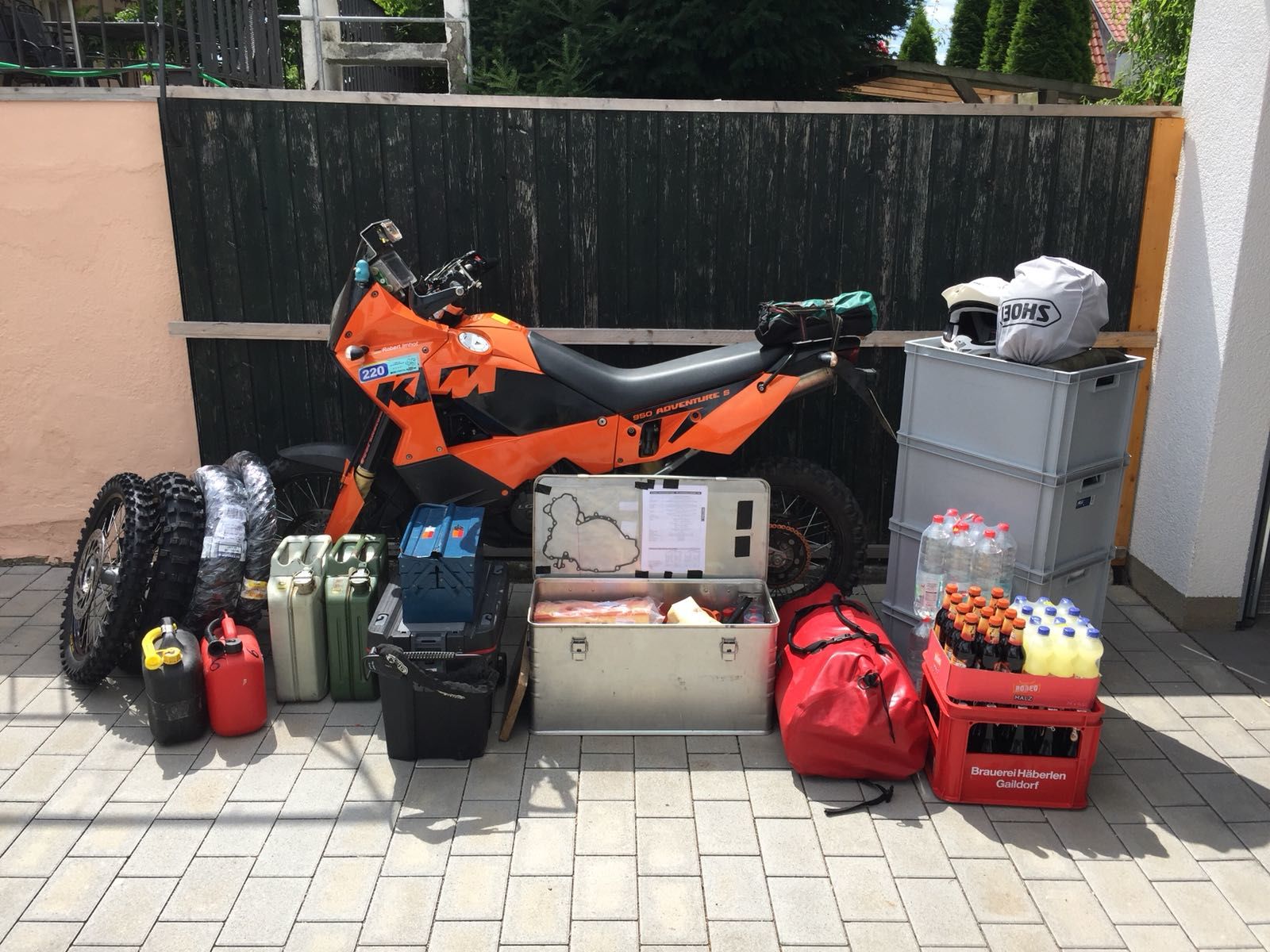 Den Rest des Abends zerlegten wir alles ein wenig, 100ltr Druckluft wurden durch die Kühler und Luftfilterboxen gejagt, Tanks voll, Camelback voll und 500 Gramm Handcreme wie von einem Schwamm aufgezogen.