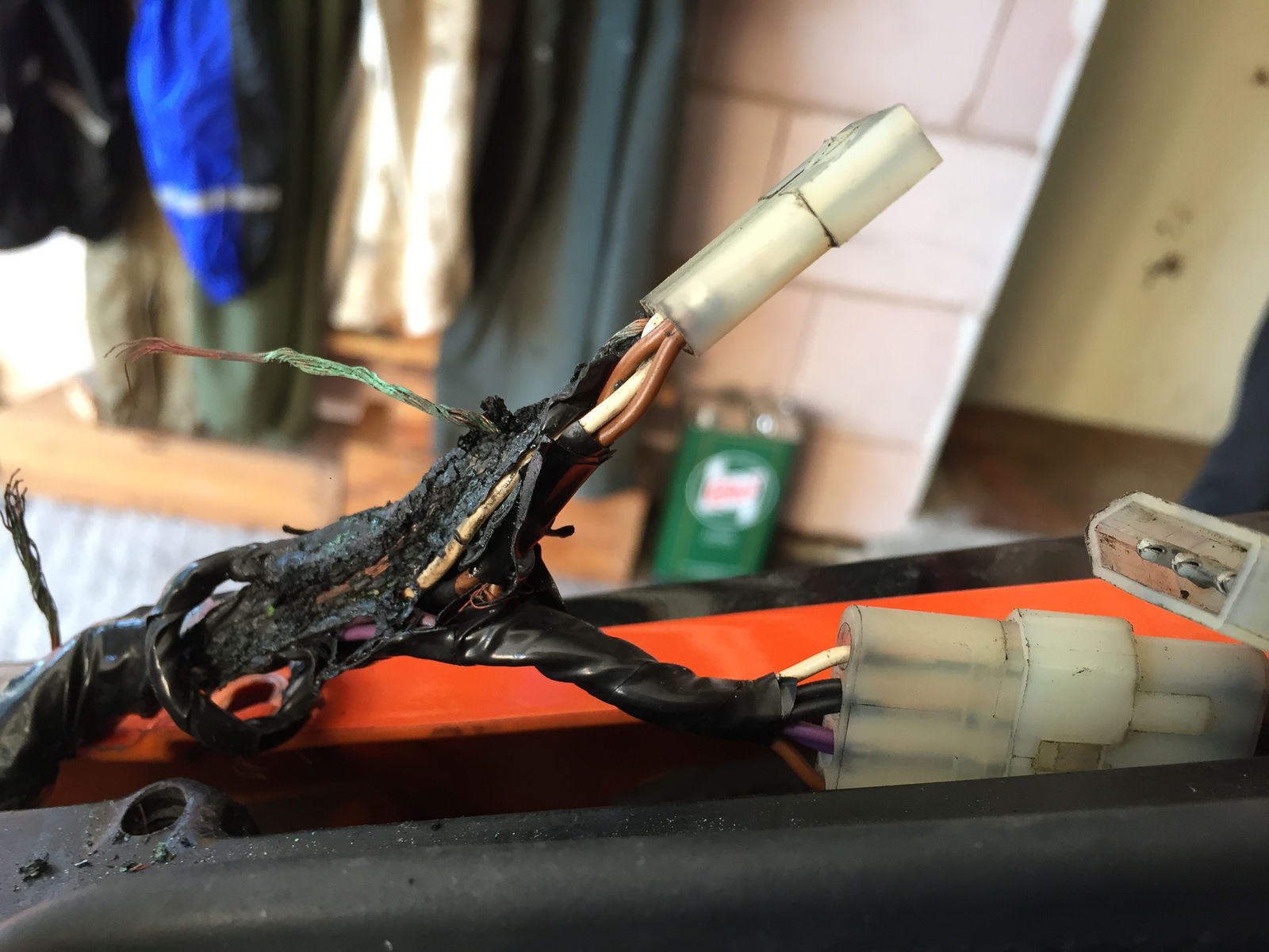 Was jetzt den Brand verursacht hat, konnten wir leider nicht endgültig klären. Beim alten Baum waren doch an einigen Stellen ein paar Kabel blank gescheuert (was die Werkstatt in RU ja eigentlich behoben haben sollte...) und hatten somit Kontakt mit dem Rahmen und wurden logischerweise mit dem neuen Baum gleich getauscht. Vorderer und hinterer Bremslichtschalter hatten einen Wackler - wurden getauscht. Sicherungskasten war nicht mehr original und sah fieß aus - wurde getauscht. Ein Defekt an der Lampenmaske konnten wir nicht ausmachen und warum gerade zuerst die Sicherung für die Uhr durchgebrannt ist - das weiß nur der heiße rumänische Sommerwind!