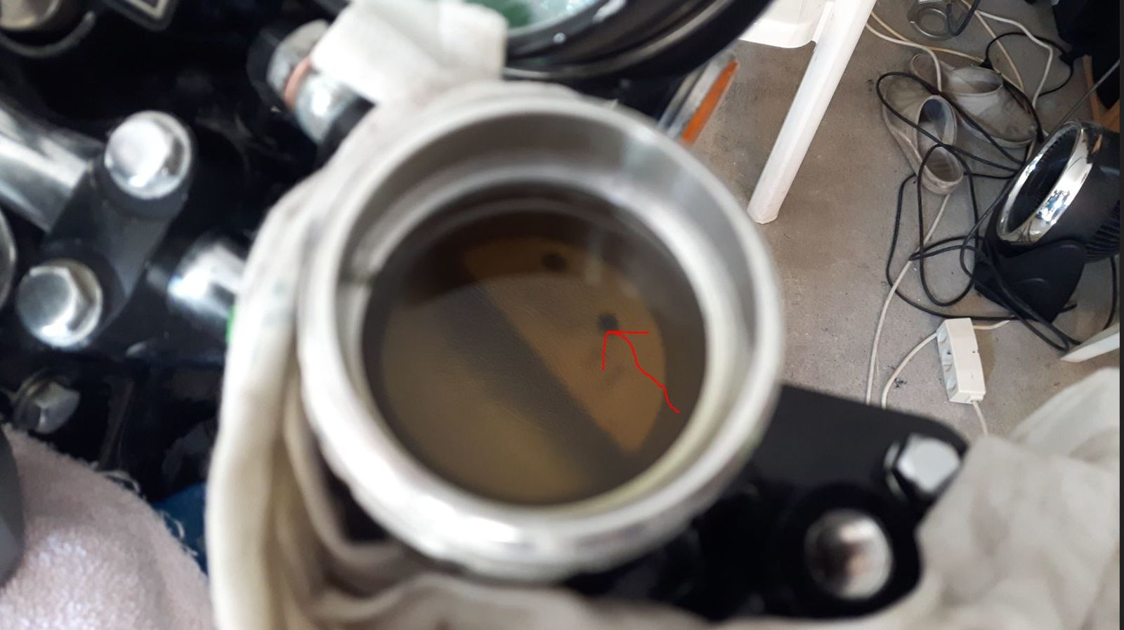 Dabei ist mir aufgefallen, dass im Loch rechst, grauer Schmodder, rauch ähnliche Rückstände austraten.