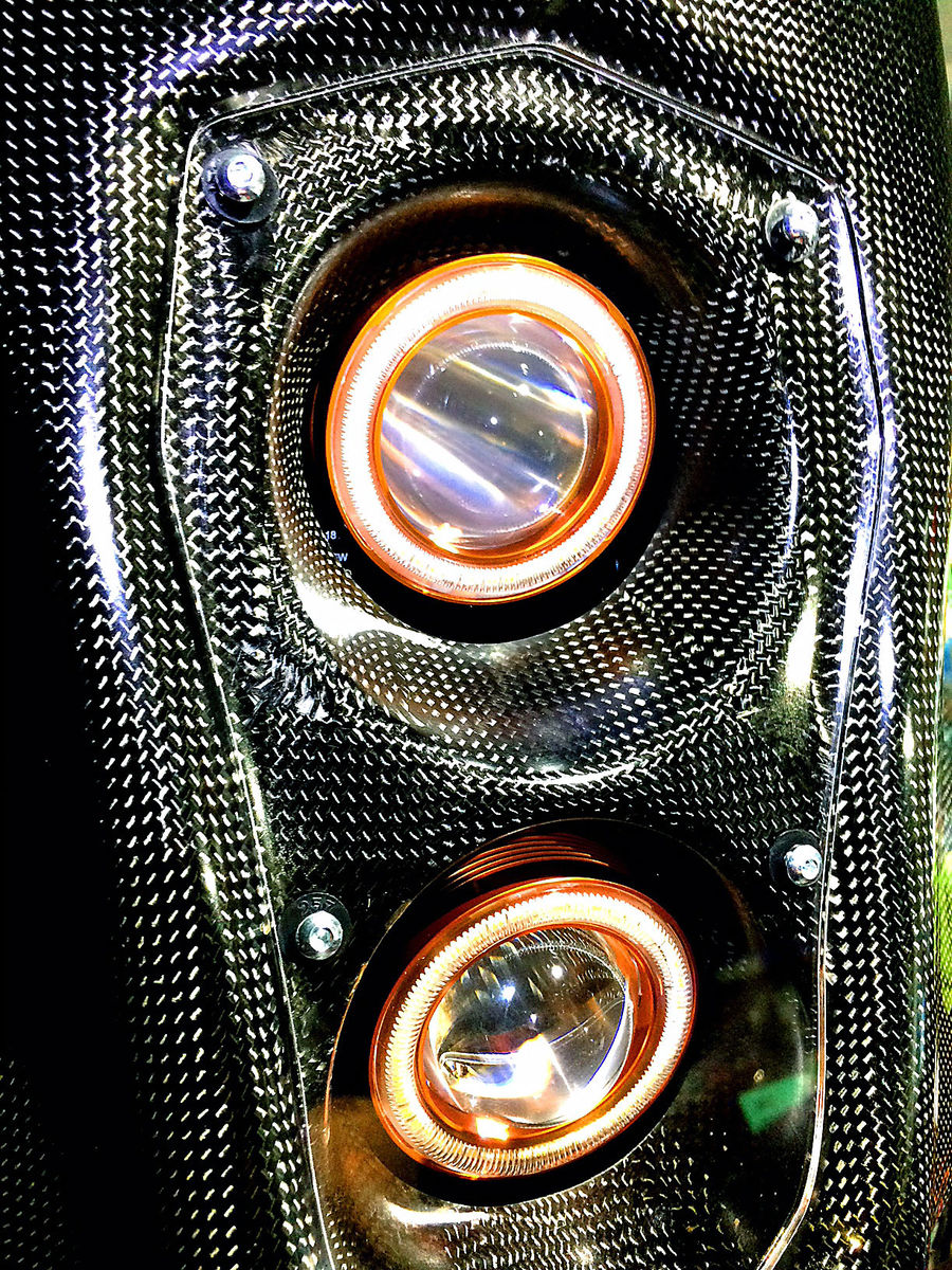 Hast du einen TÜV Prüfer, der sehr eng ist in der Regelauslegung, wirst du weniger Probleme mit dem Licht bekommen, aber mit der Maske selbst ist schwierig, weil aus Carbon und sehr scharfkantig im oberen Bereich. Ein Kantenschutz ist daher sehr hilfreich. Und die Schutzscheibe vor den Scheinwerfern kannst du für den TÜV auch gleich abschrauben.