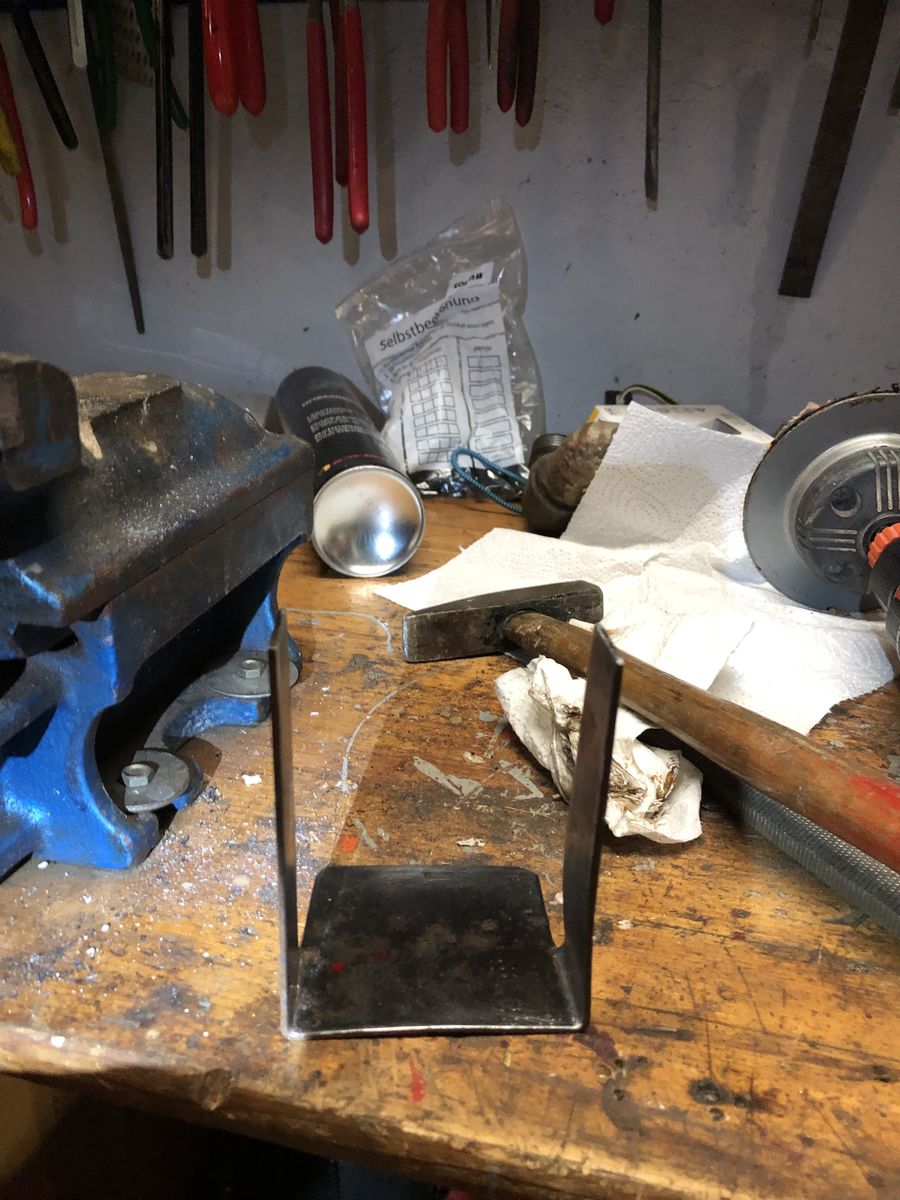 So habe mir eine Handyhalterung für mein case von Morpheus Labs gebaut. Habe sie aus Stahlblech ausgeschnitten und abgekantet. Mangels Schweißgerät habe ich ein Stück alten Besenstiel geschlitzt und eingeklebt sowie mit kleinen Schrauben gesichert.