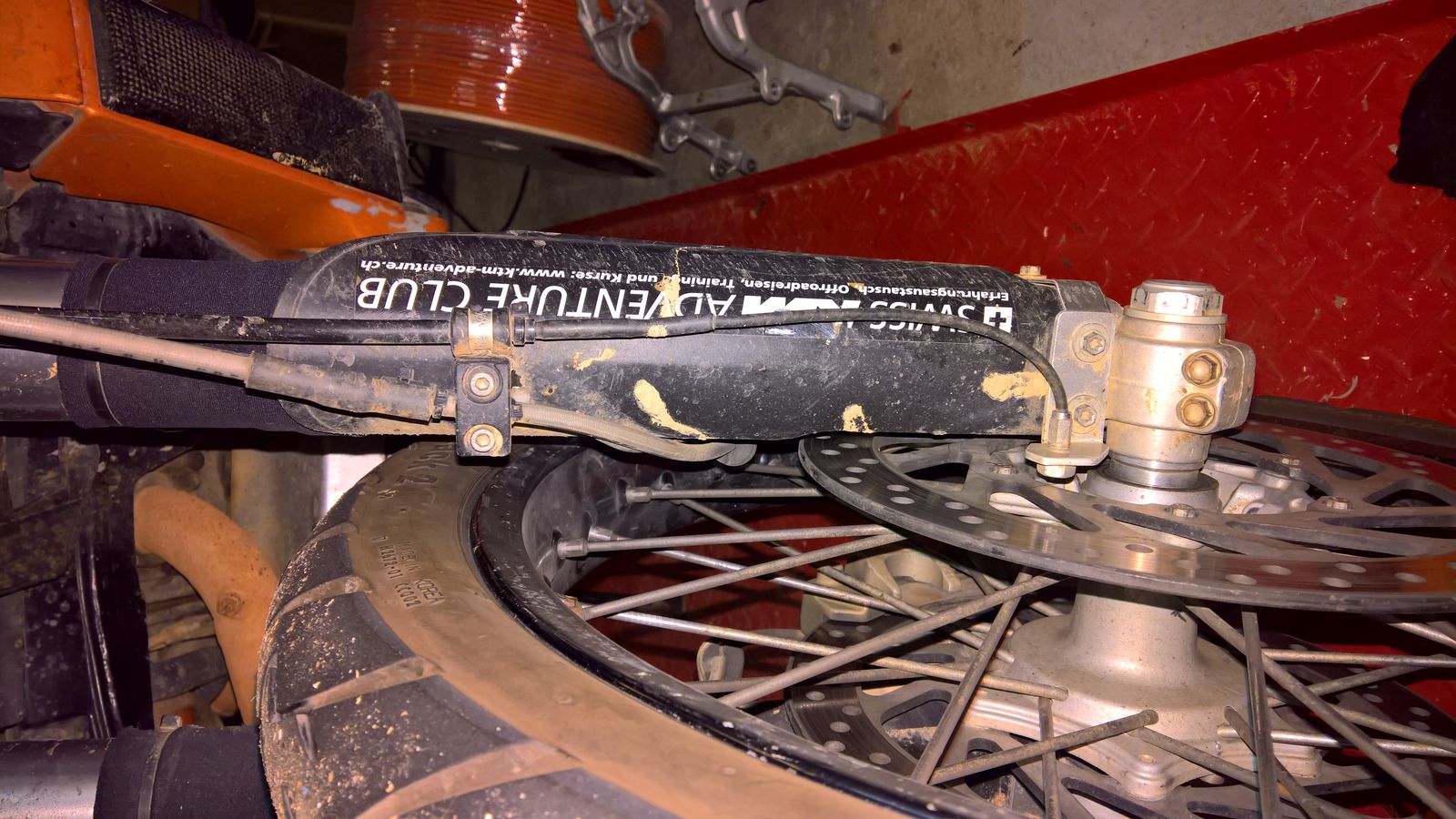 Bei den Dakar Motorrädern habe ich gesehen, daß die Bremsleitungen fest am Kotflügel und der Gabelbrücke sind und sozusagen im Bereich der Gabelrohre mitfedern. So ähnlich scheint das auch bei den 990er Adventure zu sein.