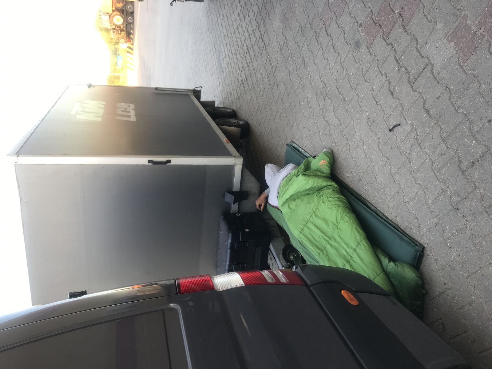 Also 2:15 Uhr einen Platz zwischen den LKW gesucht und überlegt wie man sich quartiert.