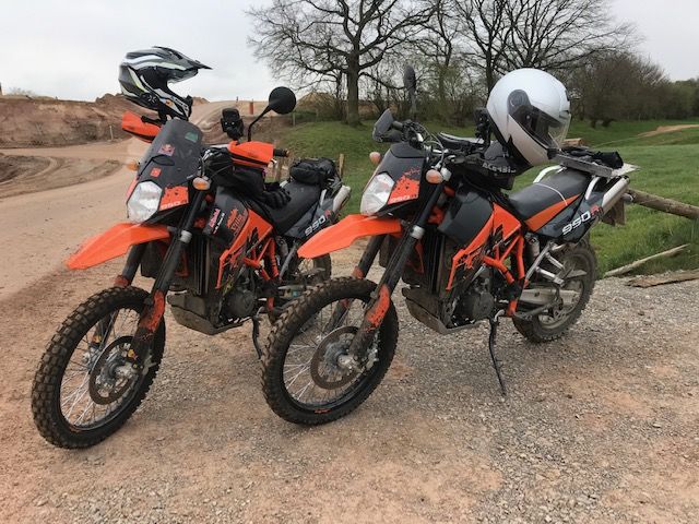 Wenn man mit zwei Superenduros artgerecht unterwegs ist, steigt die Laune und das grinsem im Gesicht wird breiter.