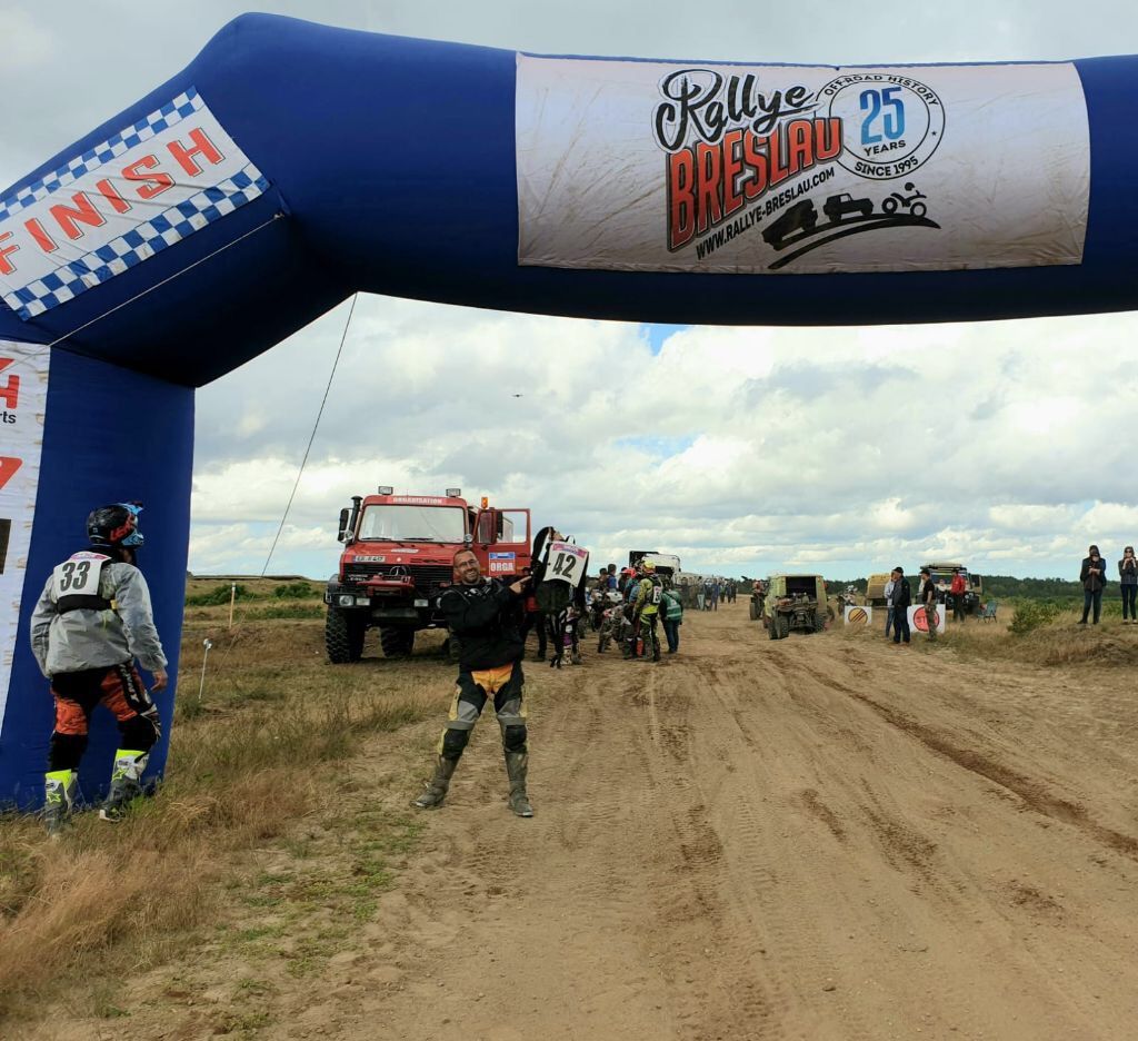 Die sitzen geschützt vor Regen unter einer Anhängerplane, zwischen hunderten Metern Roadbook Papier das alle da lassen.
