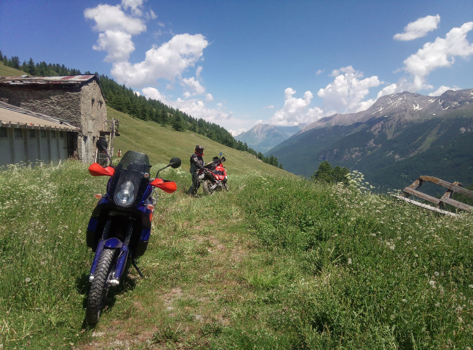 Anfahrt vom Kanton Bern Richtung Wallis am Freitag Nachmittag mit Zwischenübernachtung im wunderschönen Evionnaz (Herberge o.k. und sehr günstig für die Schweiz: 50CHF). Dann am Samstag bei 38°C "Abkürzung über eine Mountainbikepiste in Salvan/Le Cerisier nach Finhaut Richtung MontBlanc. Dann über Chamonix, Cormet de Roselend, Iseran, MontCenis, Susa zum Camping Gran Bosco in Salbertrand. Die Rally-Truppe hatte sich ja schon installiert und im Laufe der Woche trudelten noch mehr LC8ten und sonstiges Gebrumm ein. Wir haben dann gemütlich zu zweit ein paar Touren unternommen (Finestre/Assietta, Sommelier, Lago Nero) sind einmal mit der Truppe ausgeritten (wobei das hat sich nach zehn Minuten erstmal etwas verzögert weil eine 990er streikte), mit denen wir es dann doch noch bis Lac Mont Cenis hinaufgeschafft haben. Ich wie immer ganz hinten Lumpensammler gespielt und ein Franzose hat sich dann auch prompt in ein entgegenkommendes Affentwin-Paar verkeilt. Zum Glück nix schlimmes passiert ausser ein paar verbogenen Teilen, Schrammen und einer schockierten Sozia. Danach ward die Truppe vom Winde verweht und wir fuhren zu viert das nächste Refuge an, um die Plautze zu füllen. Wir sind dann gemütlich weitergfahren (Mont Cenis - echt lässig da oben) und haben den Nachmittag ausklingen lassen. Mein Bedarf an Grossgruppe war dann erstmal wieder gedeckt, woraufhin wir am nächsten Tag eine Tour zum Lago Nero (Hammer!) machten. Irgendwann sind wir dann auch noch das Valle d'Argentere (auch ganz toll) hochgefahren - das kostet zwar 3€, aber das ist es wert. Zwischendrin mal die Gegend erkundet und ein paar Sackgassen gefinden.