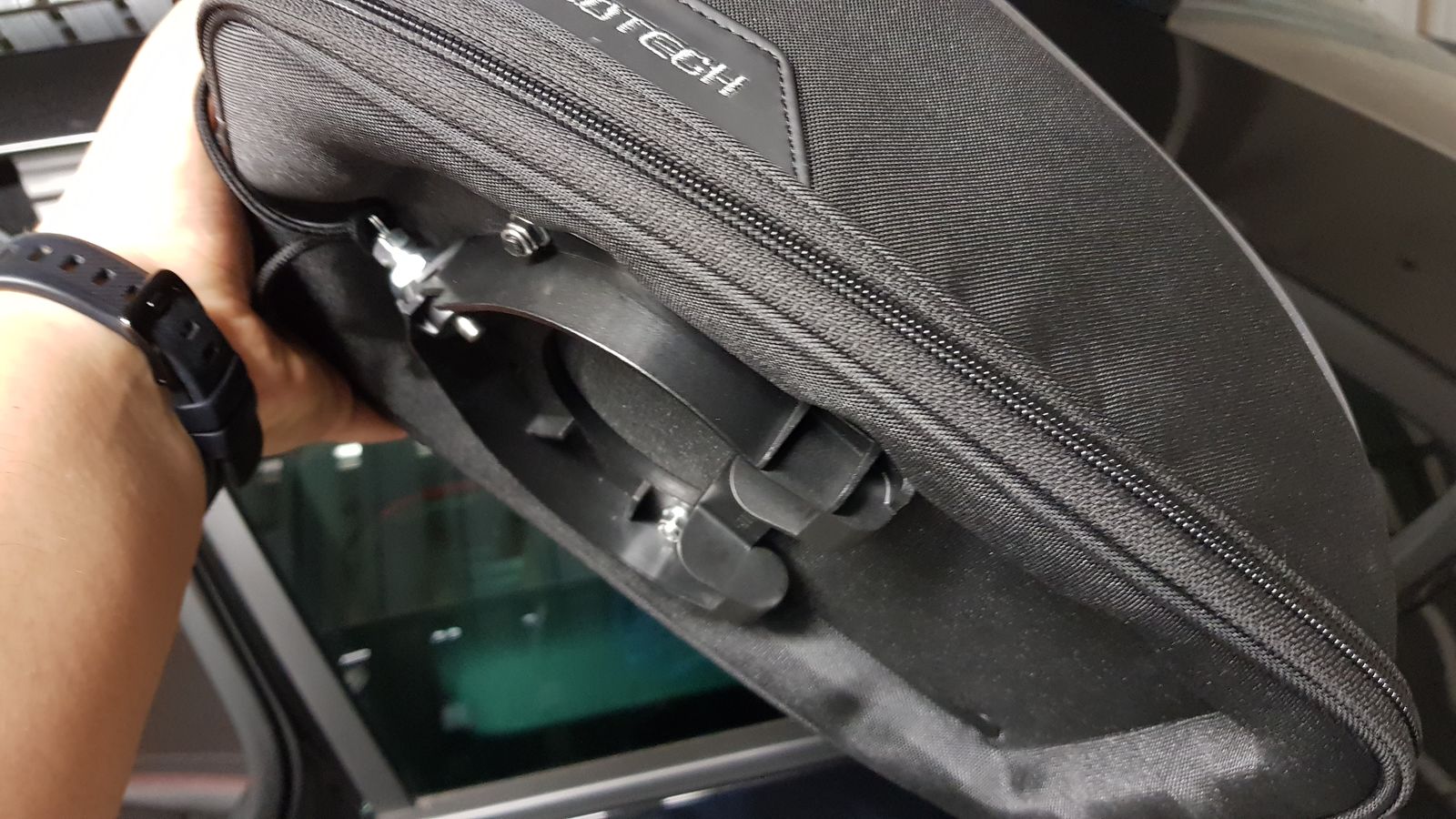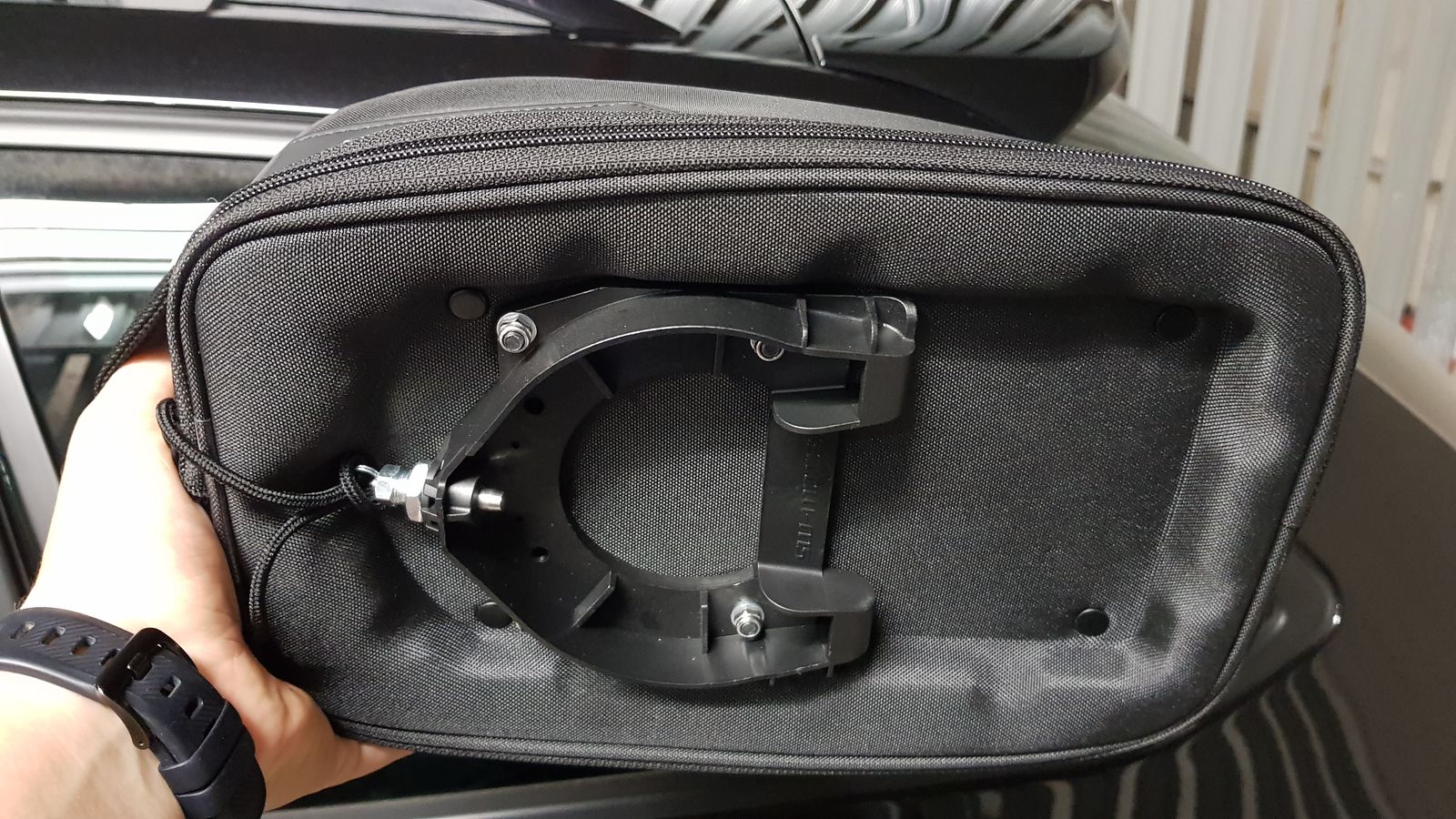 Habe diesen so nahe wie möglich an die Lenkstange montiert, was aber wiederum ein ständiges Quetschen der Tasche bei Volleinschlag zur Folge hatte.