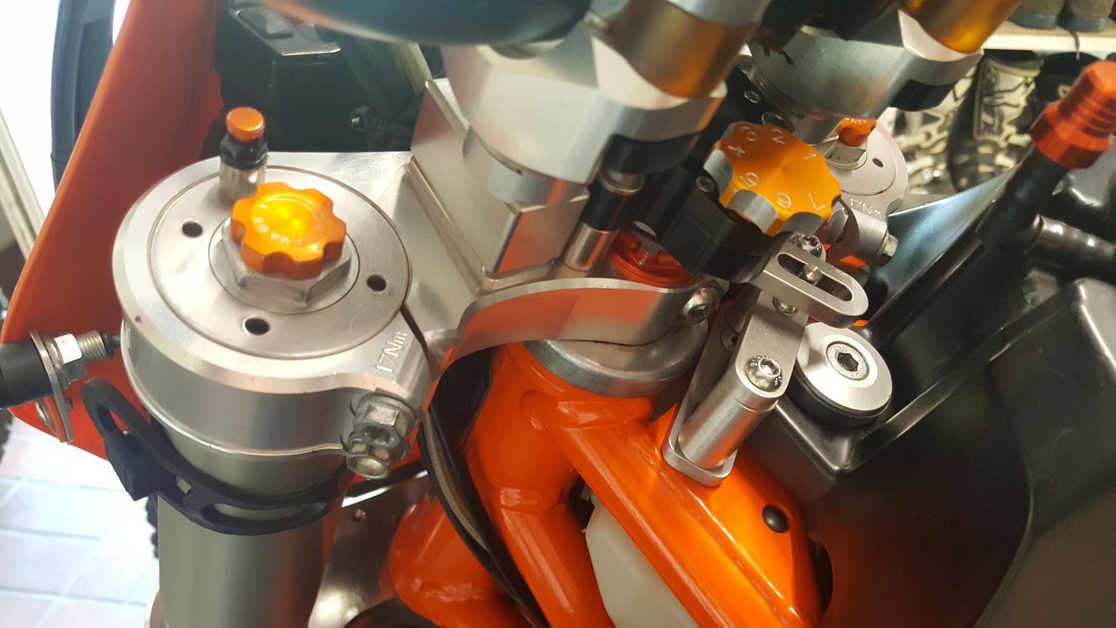 Brauchte nichts geändert werden.Kann auch das Vorderrad meiner EXC so einbauen.....Luftfilter ist von Triple Clamp.Rottweiler hab ich wieder rausgeschmissen....