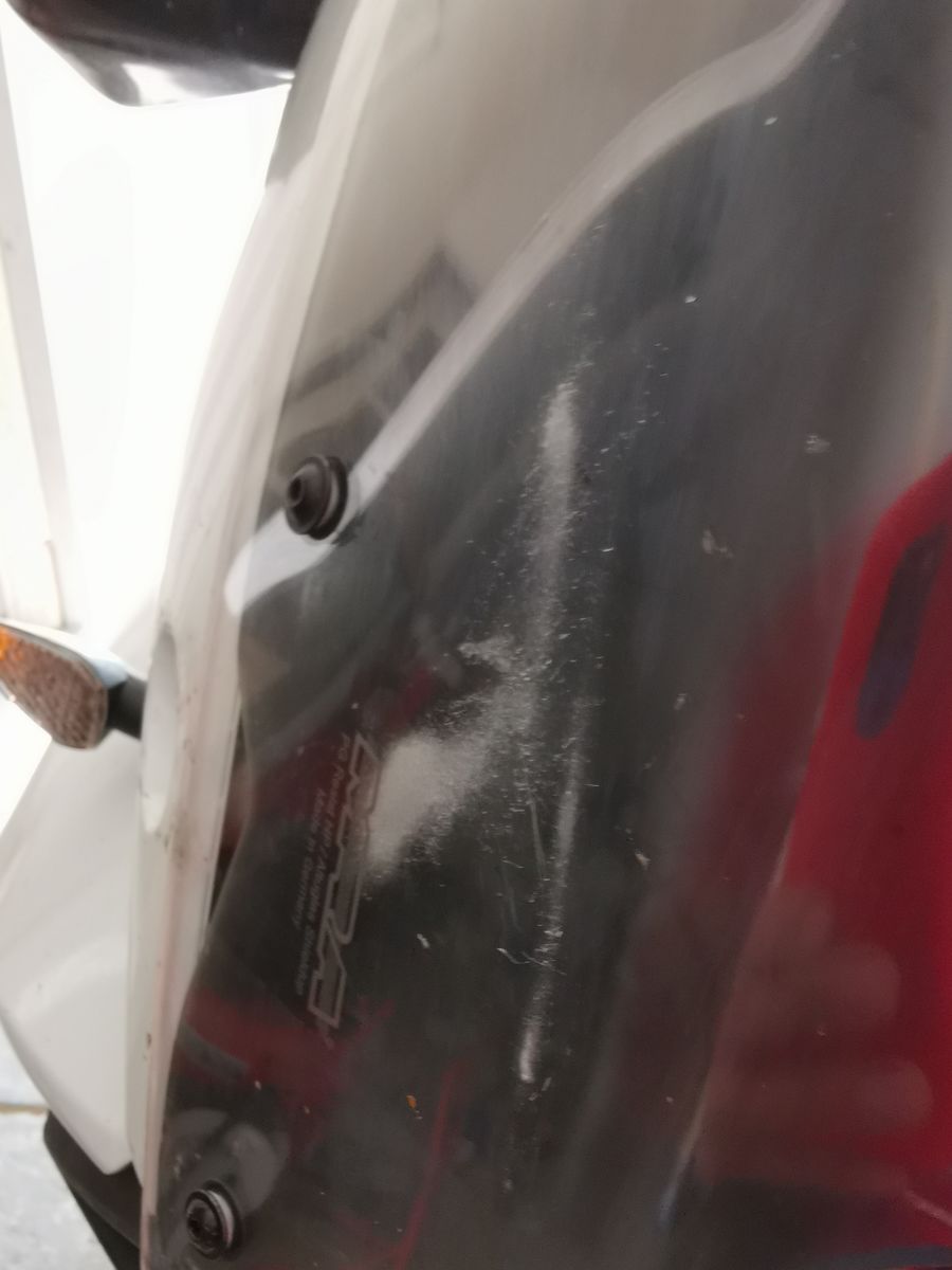 ich hatte auch zuerst Scheuerstellen. Habe diese mit Kunststoffpolitur wegpoliert. Anschließend die Scheibe mit breiteren Unterlegscheiben aus Kunststoff unterlegt. Danach mit einem Streifen Papier hinter der Scheibe geprüft, dass diese nicht mehr anliegt. Passt jetzt top und nichts scheuert mehr. Auch wenn hier scheinbar alle schreiben, dass diese Scheibe nichts ist, kann ich für meinen Geschmack nur sagen, dass ich dieses Teil top finde.