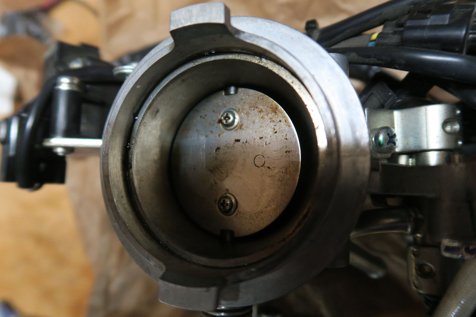 Verrust ist er an der Unterseite der unteren Drosselklappen und ölig ist er an den oberen Drosselklappen.
