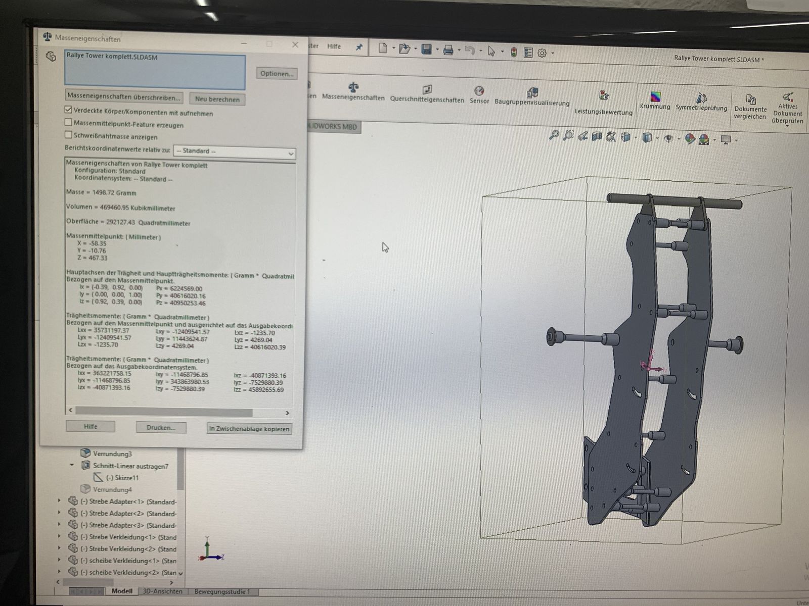 Trotz der doch recht dicken Al 7075 Bleche mit 3mm dicke wiegt der komplette Rallye Tower im CAD Programm nur knapp 1,5kg!! (Habe einige Komponenten nachgewogen und die Einzelgewichte passen fast aufs gr genau)