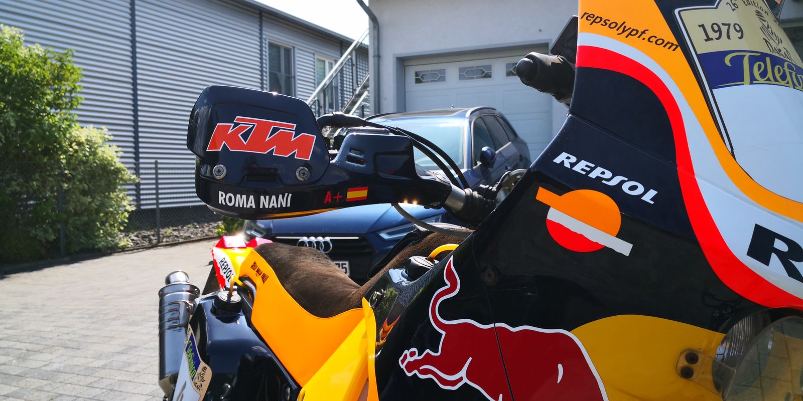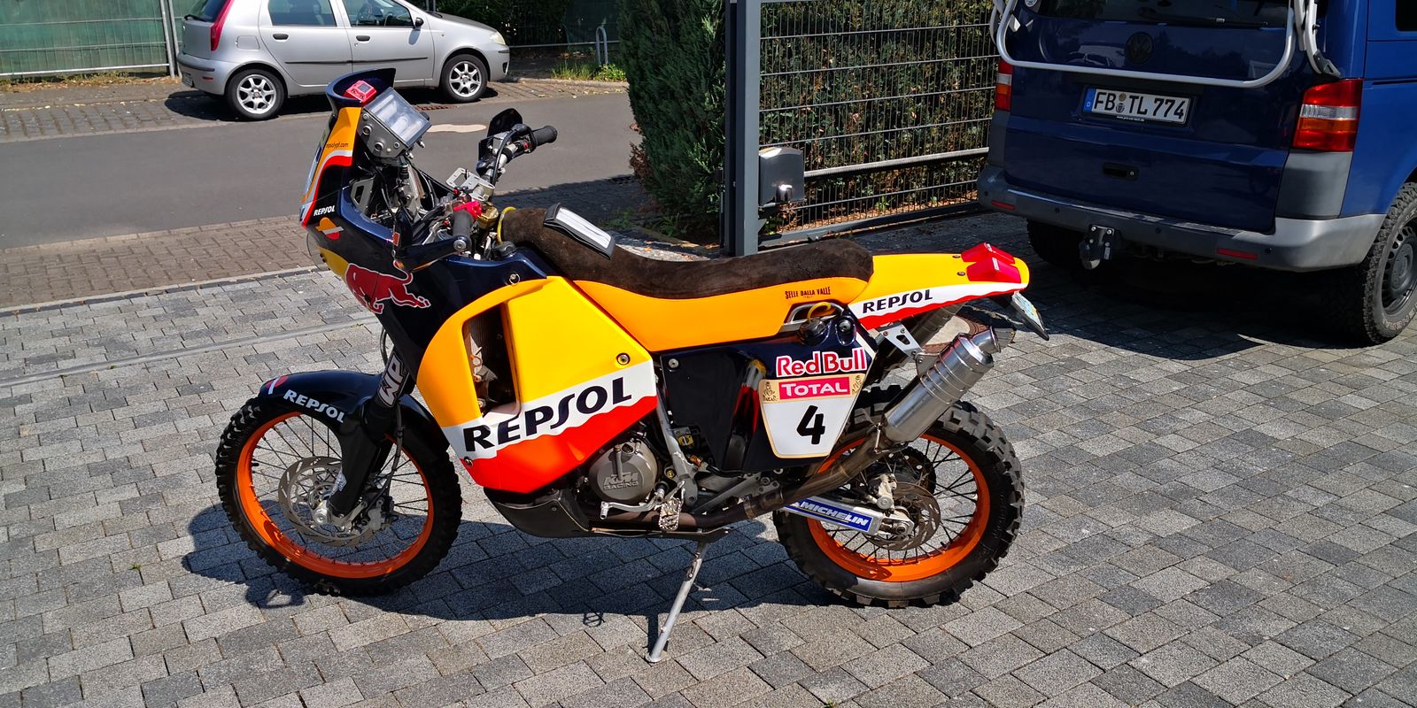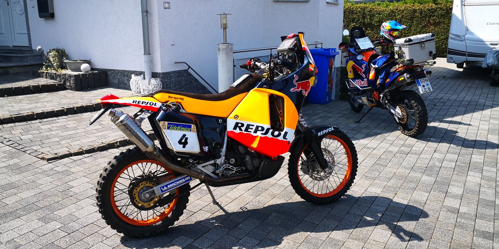 Da habe ich Tim besucht er hat eine tolle Motorrad Sammlung ..... Auf seinem besten Stück konnte ich mal Platz nehmen und den Motor mal starten.... Wahnsinn was für ein geiles Gerät.... Eine 2004 KTM 660 RR mit der originalen Ersatzverkleidung usw von Nani Roma.... Er wurde 2004 Dakar Sieger.....