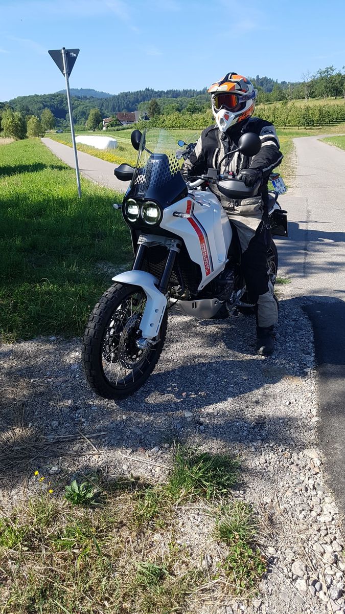 Sehr einschmeichelndes Motorrad. Fühlt sich nach leichter an, als sie ist (auf dem Papier fast gleich mit meiner 1090er). Handlich, enger Knieschluss, gute Sitzposition für mich. Ich sitze mehr drin als drauf, wie bei der 990ADV seinerzeit.