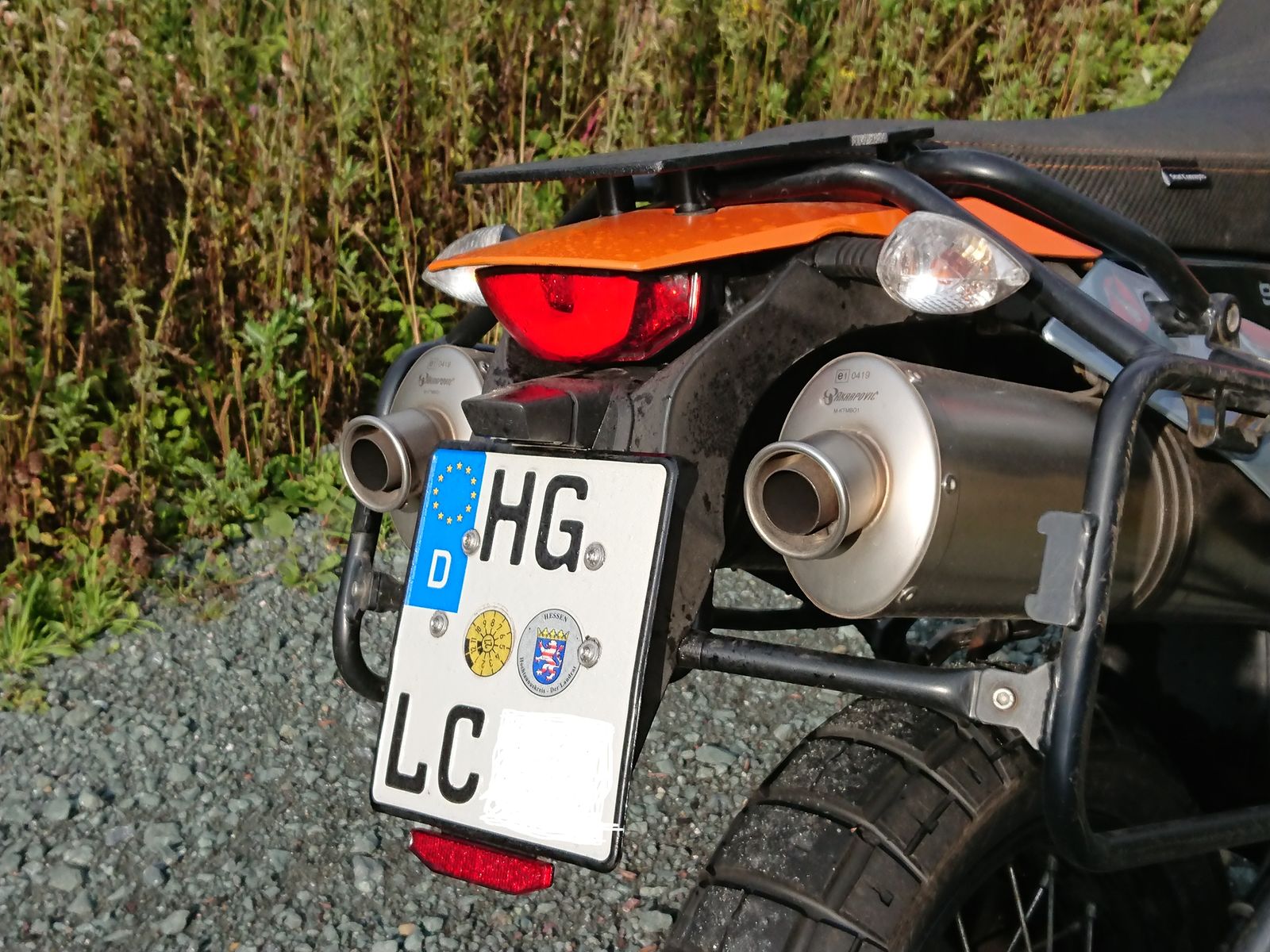 Ich entdecke einen kleinen Sprung im Rücklichtglas. Hm, ob das der TÜV sieht? Langsam komme ich ins Grübeln: Das Rücklichtdesign meiner Adventure gefällt mir eigentlich ganz gut. Aber die Leuchtstärke wirkt wie zwei einsame Grablichte in einer kalten Dezembernacht. Jetzt nagt es an mir: Ich will was verändern! Da gibt es ja als Alternative auch noch das originale KTM- LED Rücklicht! Aber irgendwie werde ich nicht warm damit: Die Lichtverteilung entspricht den Kirmesbirnchen vom Autoscooter beim Schützenfest. Und dieses graue Glas gefällt mir leider auch nicht. Also etwas ganz anderes?