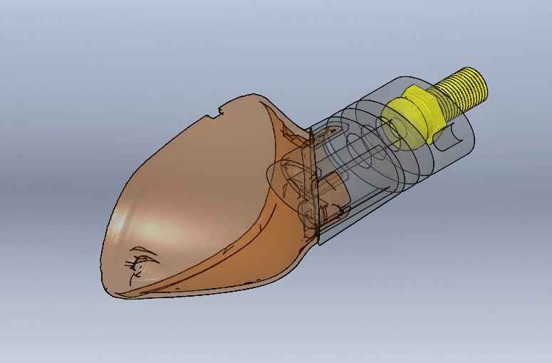 Ich habe nun einen ersten Entwurf für einen Blinkerarm ausgearbeitet. Dazu auch einen Gewindebolzen zum Einsetzen entworfen.
