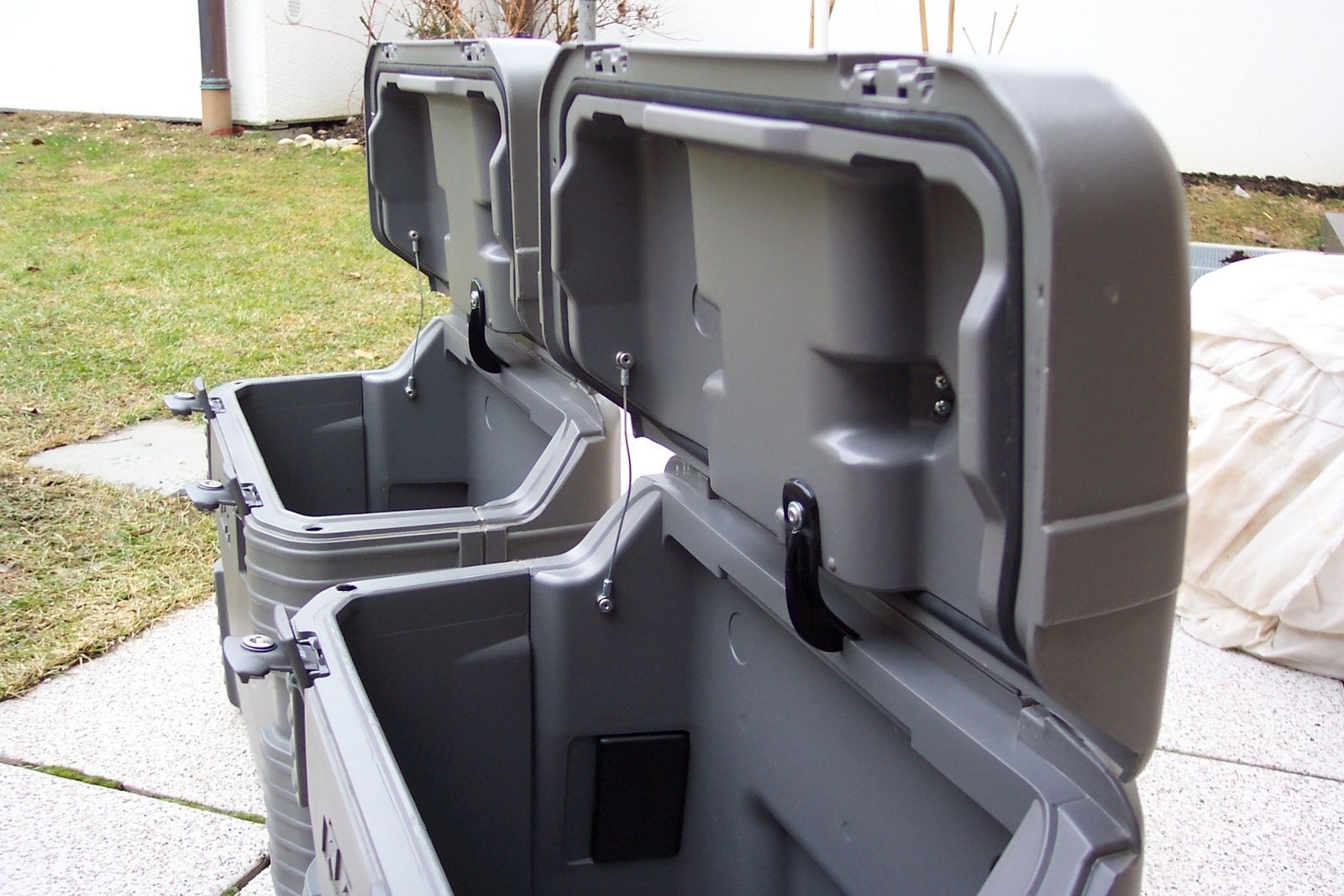 Nach der Tour, wenn die Koffer lange nicht benutzt werden, das Wasser ablassen, die Stopfen draußen lassen, damit die Dinger auslüften können.