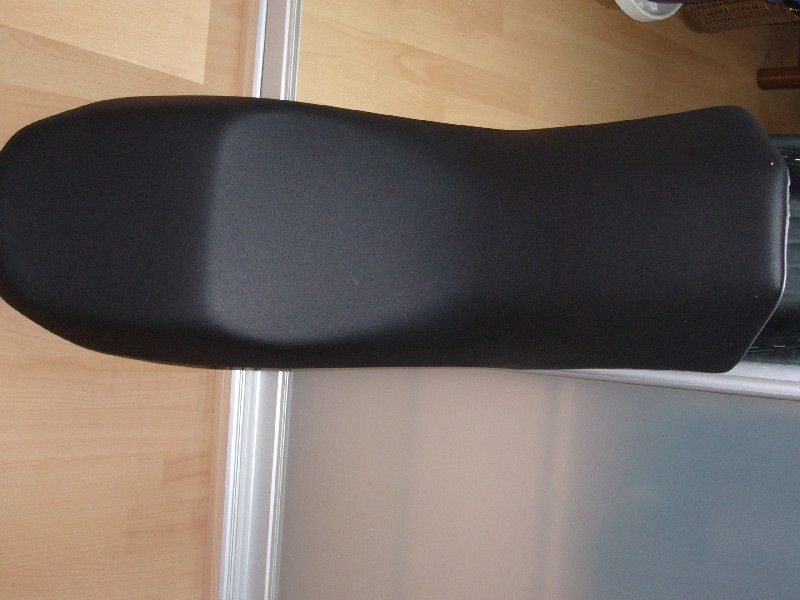 Farbe schwarz, ausgesprochene Sitzmulde für den Fahrer, daher fürs Reisen und nicht für Rallyes geeignet,