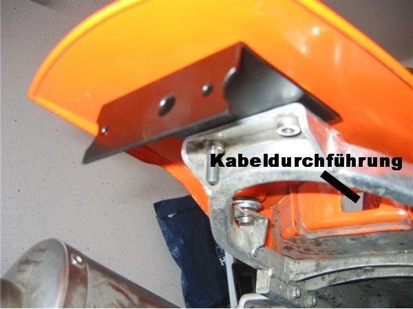 Ich habe dies so gelöst, dass ich die Kabel (Rücklicht und Blinker) durch einen Schlauch unter die Sitzbank führe.