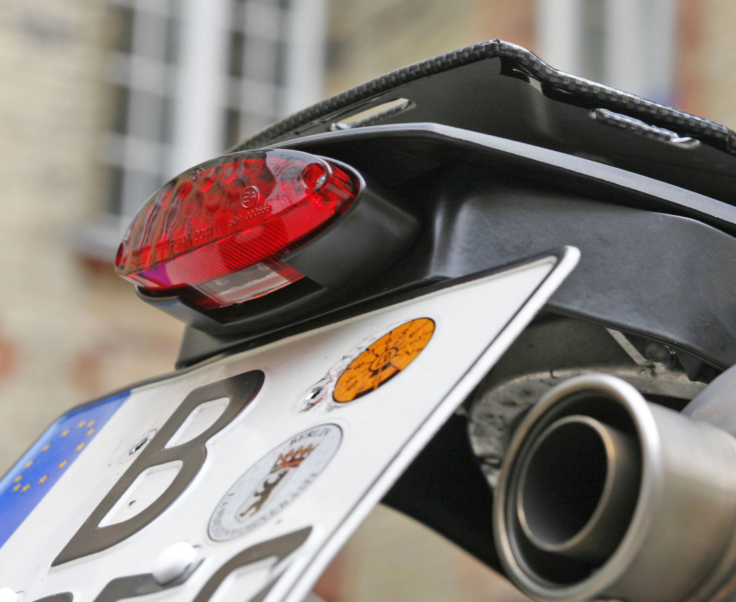 Befestigt ist die Platte an den Blinkern und an der Befestigungen für die Auspuffanlage.