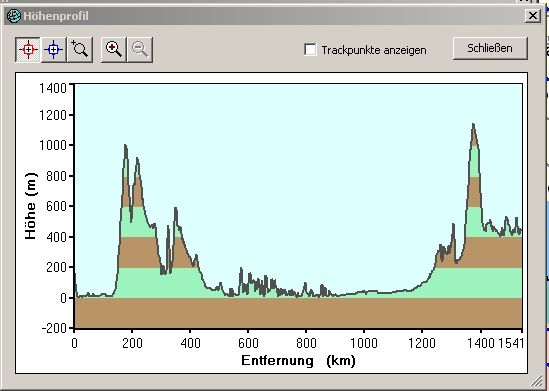 Die ganze gelbe Strecke besteht aus 5066 Punkten oder 1540km.