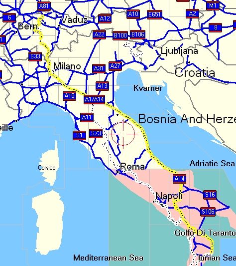 Beachte die Höhe des Apenin im Süden! |