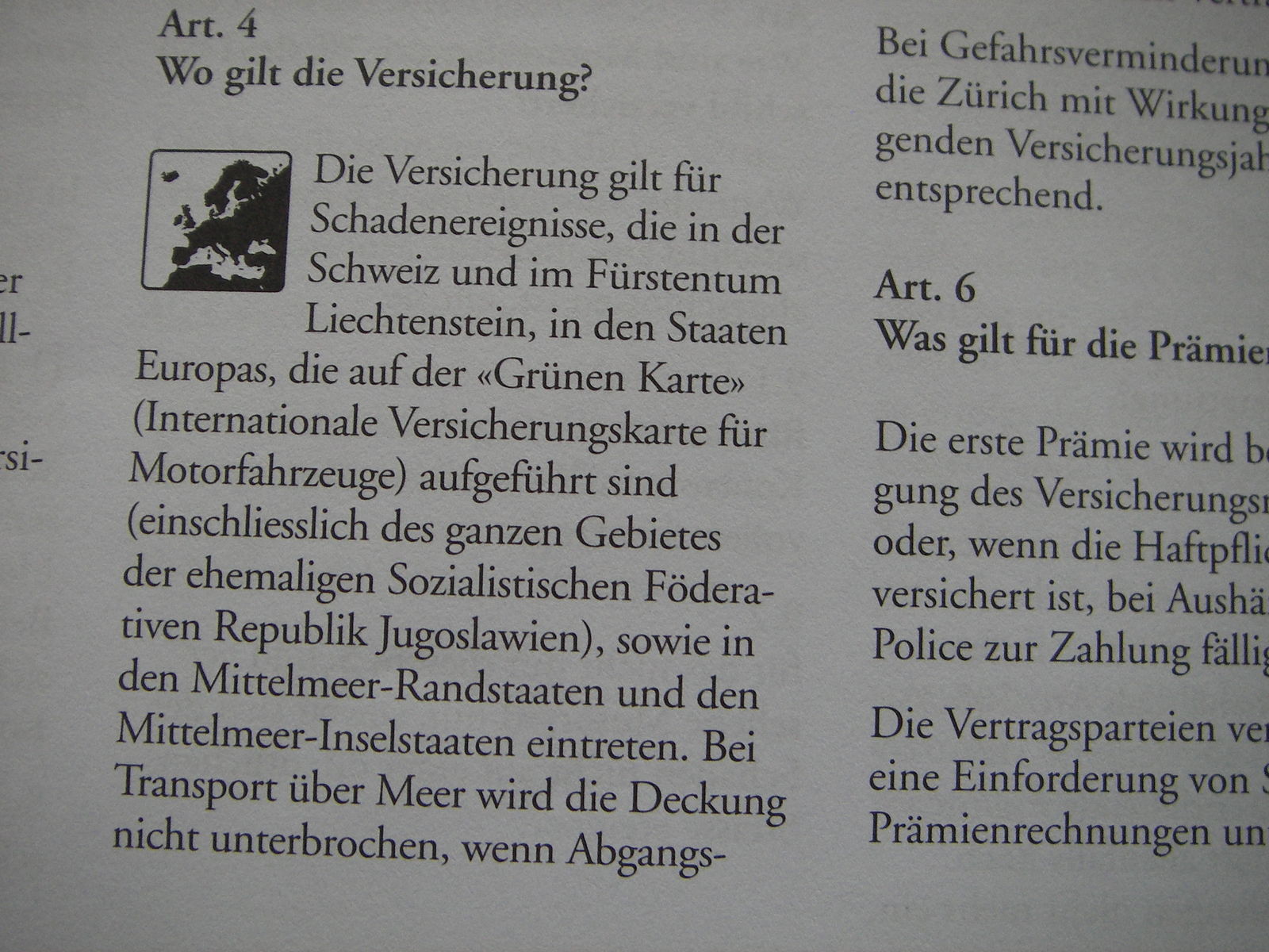 " ... Der Versicherungsschutz erstreckt sich auf Europa und die Mitgliedsstaaten der Europäischen Wirtschaftsgemeinschaft.