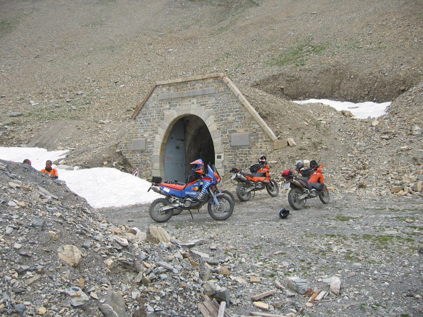 Lediglich der Tunnel am Parpaillon sollte min. zu Zweit unternommen werden, denn ich denke, daß min. noch 2 Eisfelder da sind ( waren sehr dickes Eis und sehr lang ). Wir haben zu Viert jedes Mopped einzeln über die Eisfelder bugsiert und das war schon an manchen Stellen eine ziemliche Plackerei