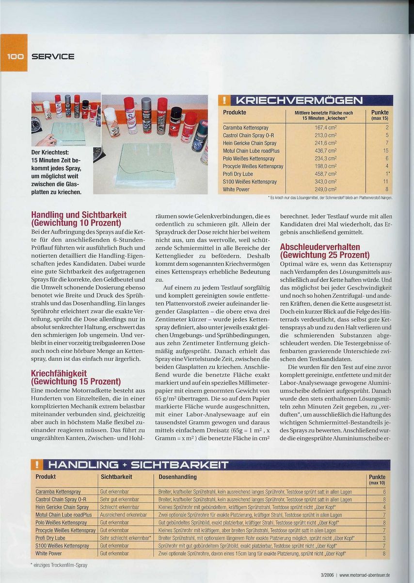 BeitragVerfasst am : Mi, 21. Jun 2006, 7:41    Titel: Test: Kettensprays Antworten mit Zitat