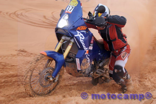 Im 2001 habe ich die El Chott selber auf meiner LC4 540 SC mit 30 Litertank gefahren. Wenn ich die Rallye wieder fahren würde, dann währe die 525 Desert für mich die interessanteste KTM. Mir währe sogar meine LC4 Adventure zu unhandlich. Je leichter desto mehr Spass hast Du, denn die Rallye gewinnst Du nicht auf der Piste sondern in den Dünen :-)