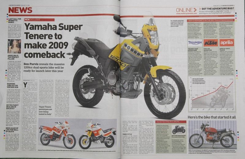nach BMW kommt nun auch endlich Yammi aus der Knete und soll 2009 endlich eine neue Super Tenere mit 1200 ccm rausbringen.