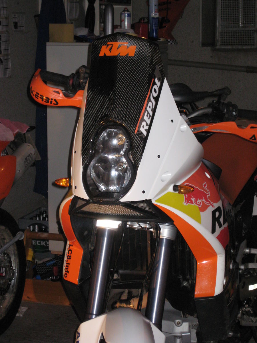Ich reise ganz viel (Afrika, Zudamericas, usw.) und I liebe die Design von KTM Rally, also Ich habe mir gemacht einnen carbon Windschield mit Rally gesicht.